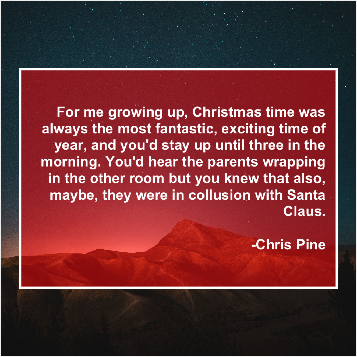 “For me growing up, Christmas time was always the most fantastic, exciting time of year, and you’d stay up until three in the morning. You’d hear the parents wrapping in the other room but you knew that also, maybe, they were in collusion with Santa Claus.”