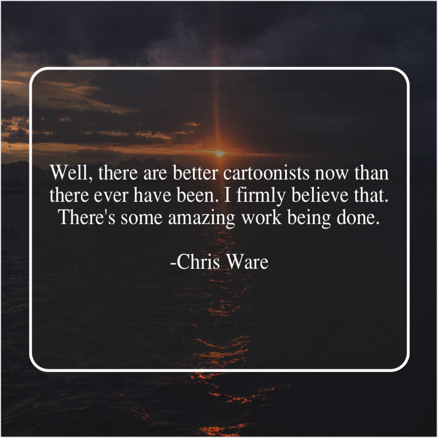 Chris Ware Chris Ware – Well, there are better cartoonists… June 8, 2019 admin “Well, there are better cartoonists now than there ever have been. I firmly believe that. There’s some amazing work being done.”-Chris Ware