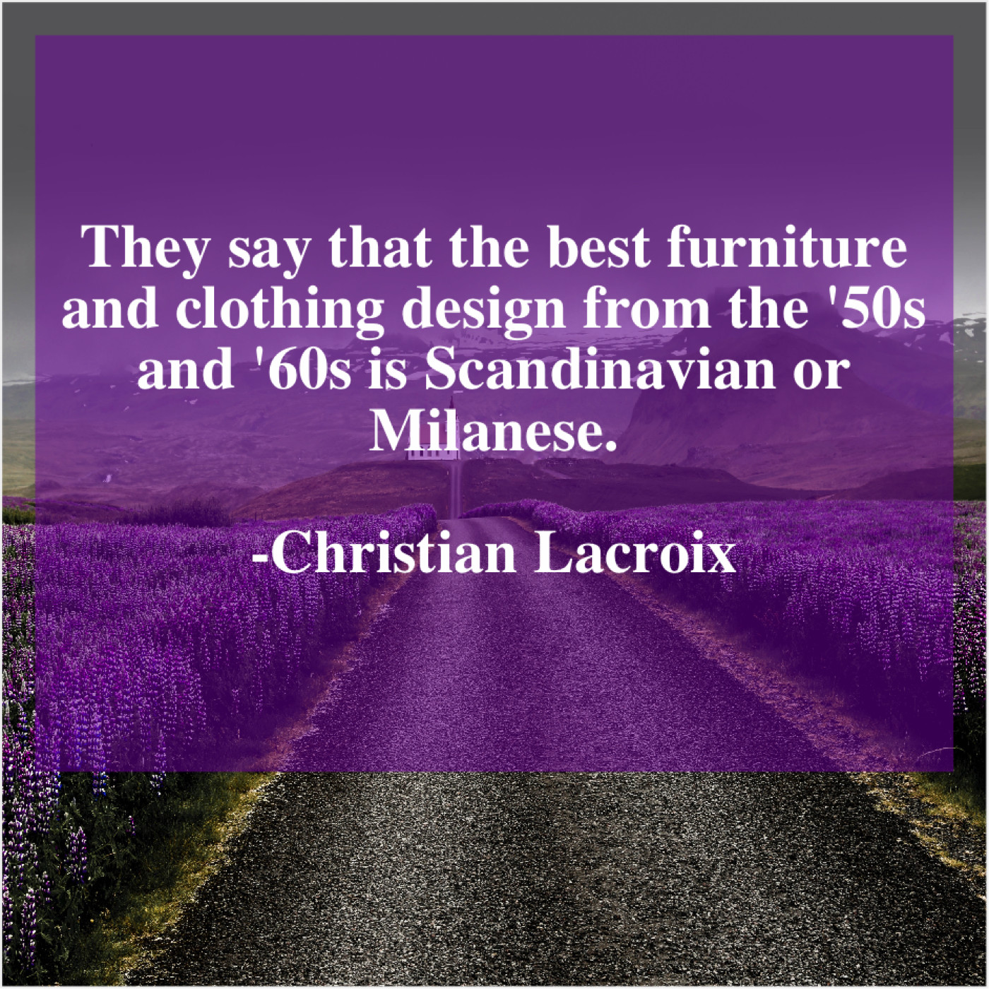 Christian Lacroix Christian Lacroix – They say that the best… July 2, 2019 admin “They say that the best furniture and clothing design from the ’50s and ’60s is Scandinavian or Milanese.”-Christian Lacroix