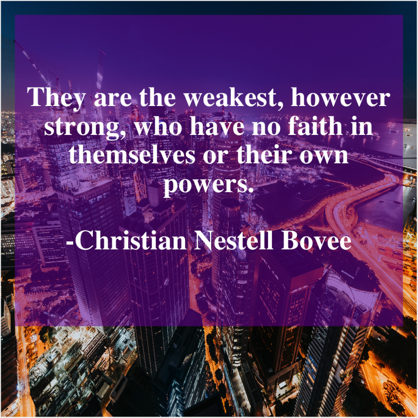 “They are the weakest, however strong, who have no faith in themselves or their own powers.”
