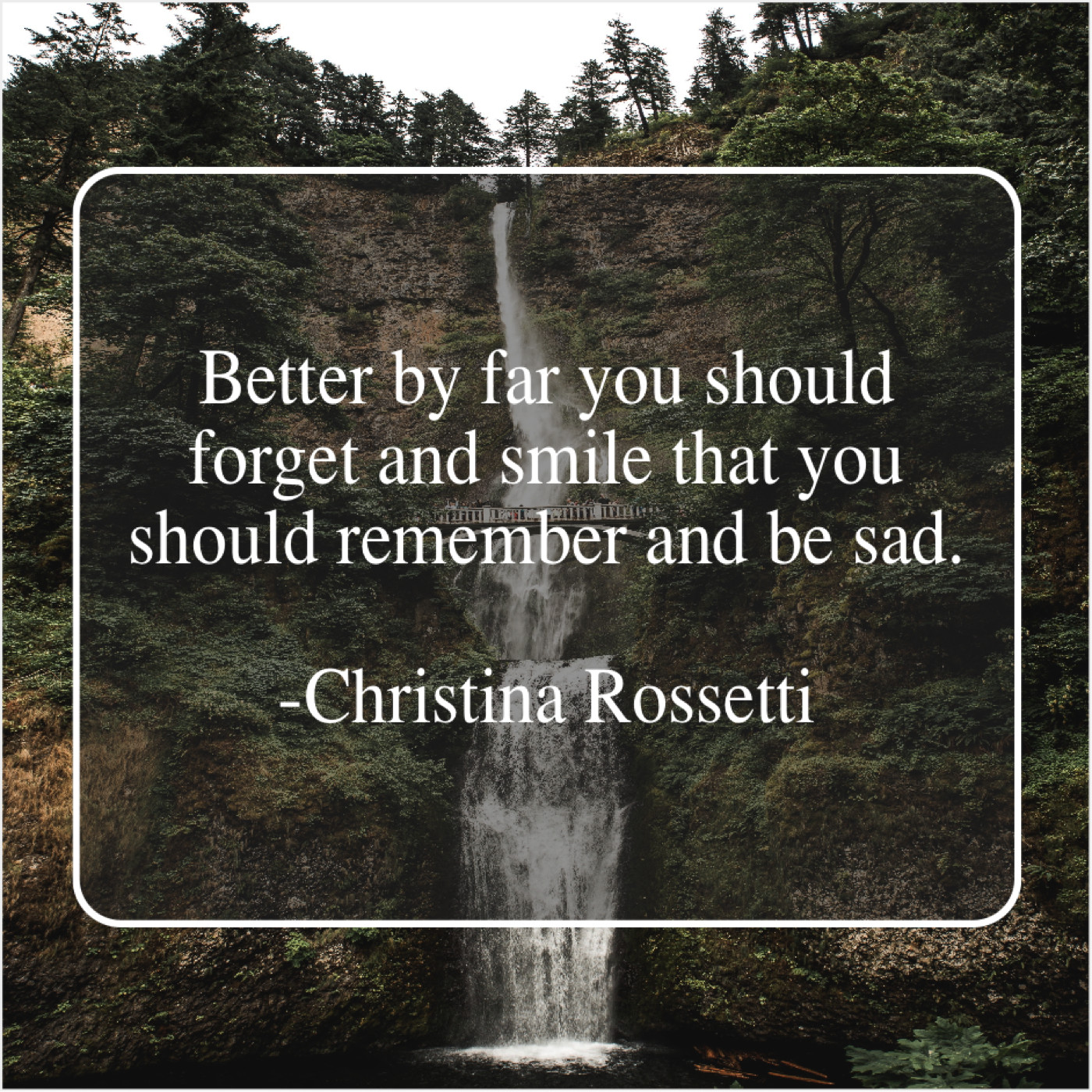 Christina Rossetti Christina Rossetti – Better by far you should… May 5, 2019 admin “Better by far you should forget and smile that you should remember and be sad.”-Christina Rossetti