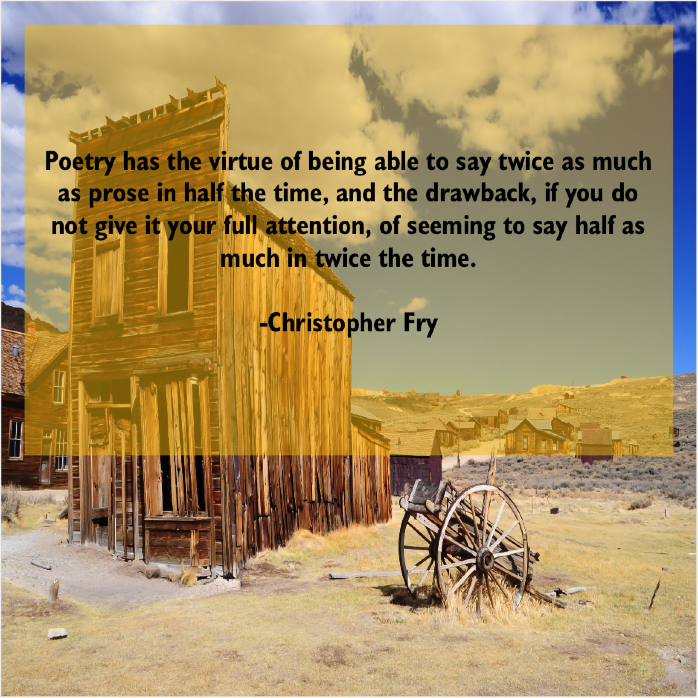 Christopher Fry Christopher Fry – Poetry has the virtue of… August 30, 2019 admin “Poetry has the virtue of being able to say twice as much as prose in half the time, and the drawback, if you do not give it your full attention, of seeming to say half as much in twice the time.”-Christopher Fry