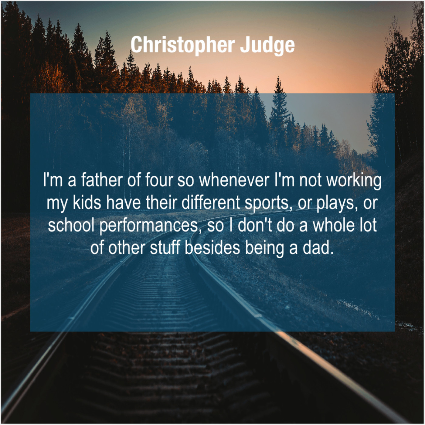 Christopher Judge Christopher Judge – I’m a father of four… March 9, 2019 admin “I’m a father of four so whenever I’m not working my kids have their different sports, or plays, or school performances, so I don’t do a whole lot of other stuff besides being a dad.”-Christopher Judge