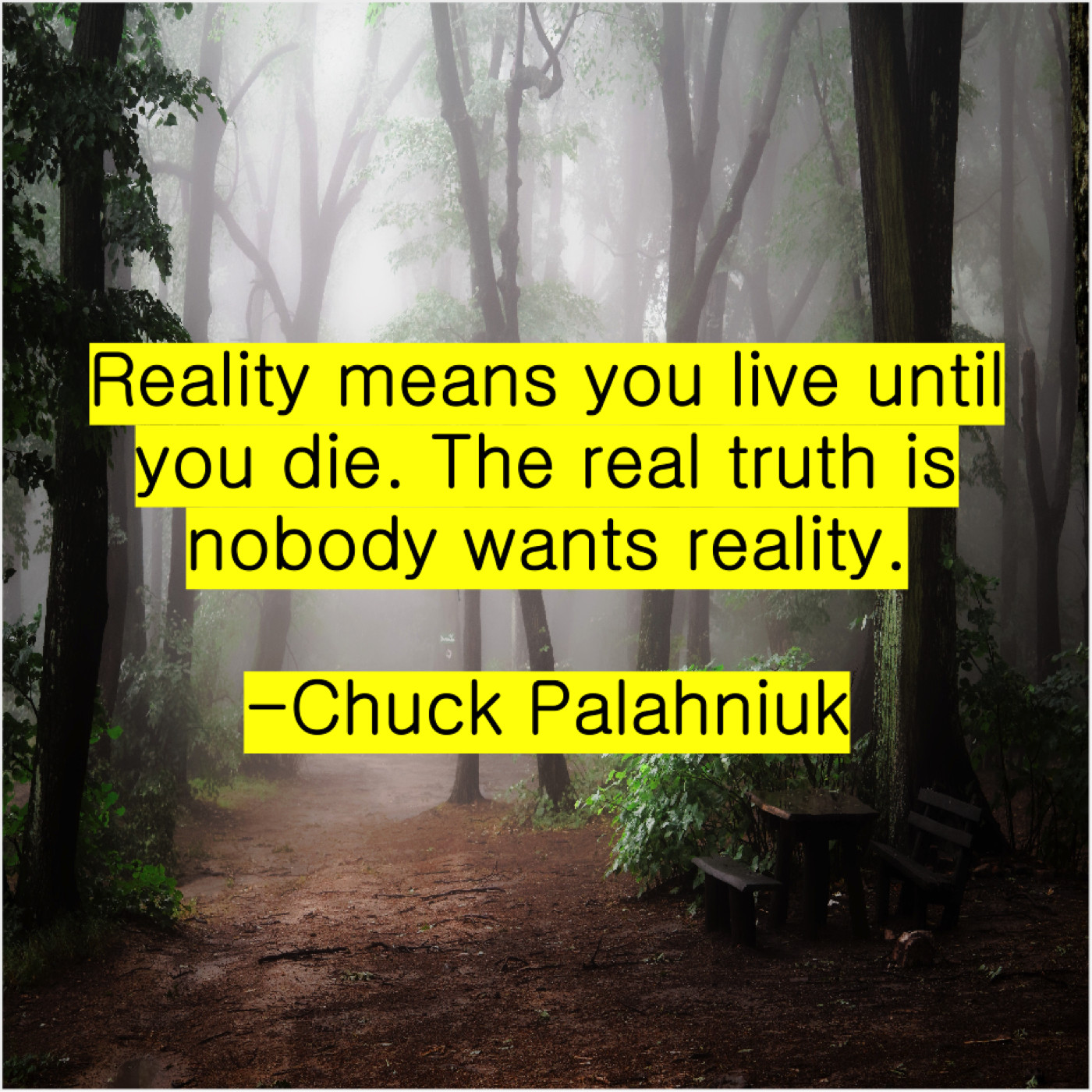 Chuck Palahniuk Chuck Palahniuk – Reality means you live until… November 11, 2018 admin “Reality means you live until you die. The real truth is nobody wants reality.”-Chuck Palahniuk