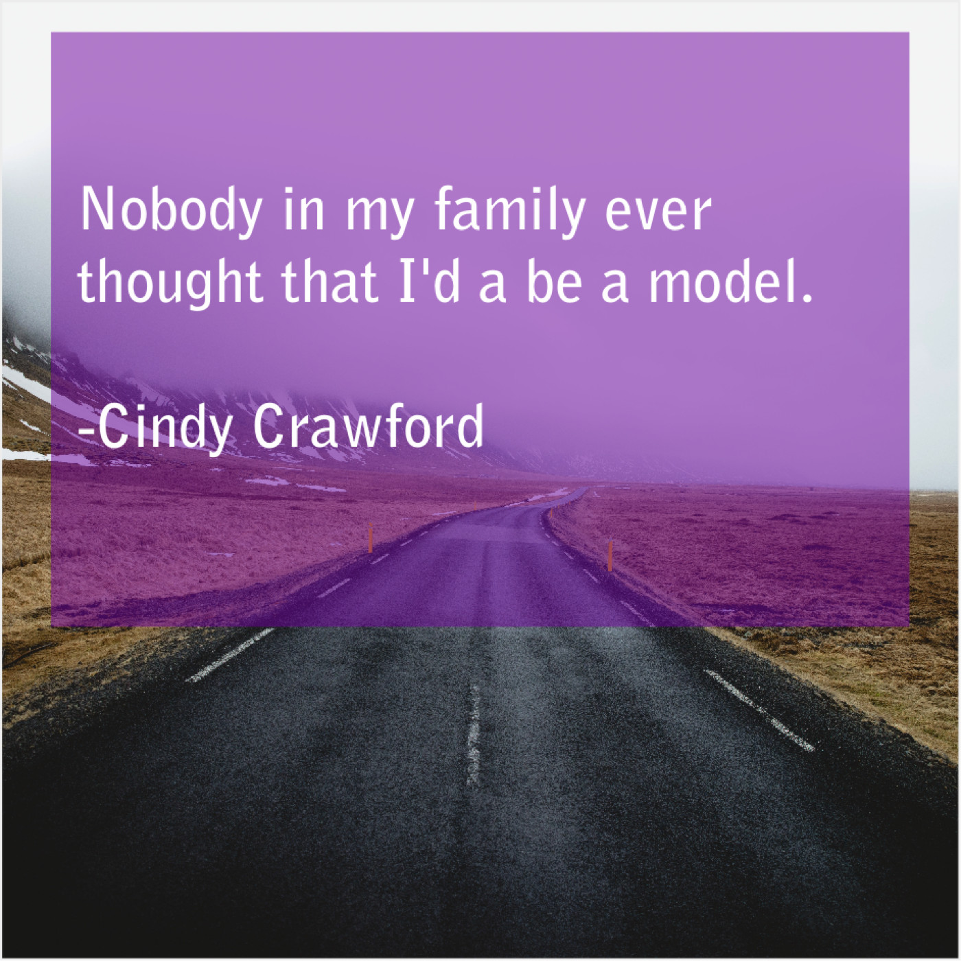 Cindy Crawford Cindy Crawford – Nobody in my family ever… January 26, 2019 admin “Nobody in my family ever thought that I’d a be a model.”-Cindy Crawford