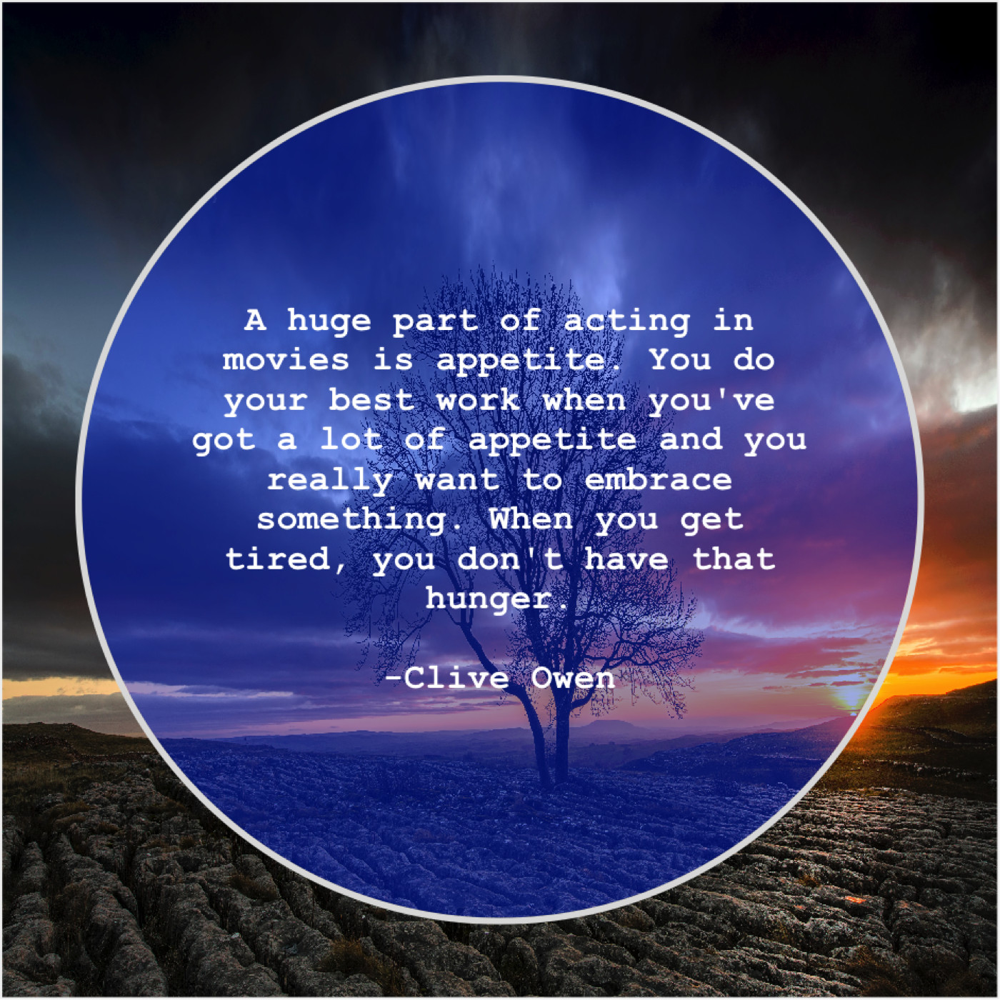 “A huge part of acting in movies is appetite. You do your best work when you’ve got a lot of appetite and you really want to embrace something. When you get tired, you don’t have that hunger.”