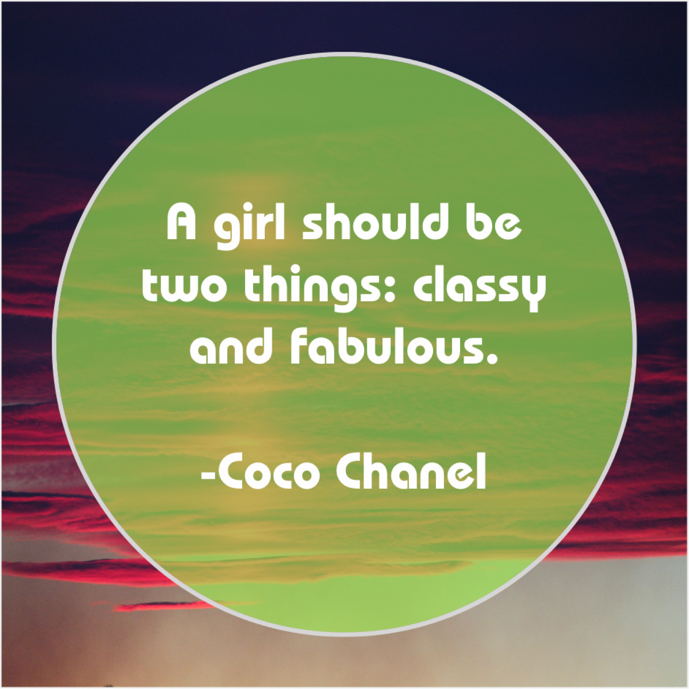Coco Chanel Coco Chanel – A girl should be two… September 4, 2019 admin “A girl should be two things: classy and fabulous.”-Coco Chanel