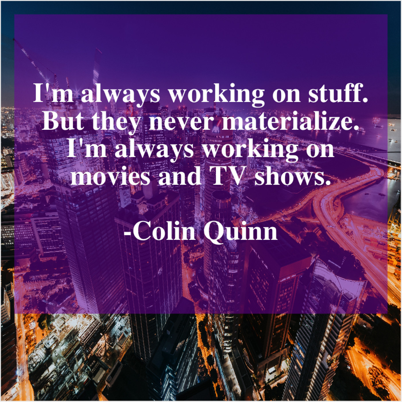 Colin Quinn Colin Quinn – I’m always working on stuff… May 26, 2019 admin “I’m always working on stuff. But they never materialize. I’m always working on movies and TV shows.”-Colin Quinn