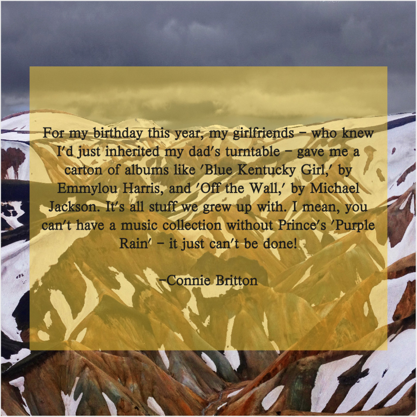 “For my birthday this year, my girlfriends – who knew I’d just inherited my dad’s turntable – gave me a carton of albums like ‘Blue Kentucky Girl,’ by Emmylou Harris, and ‘Off the Wall,’ by Michael Jackson. It’s all stuff we grew up with. I mean, you can’t have a music collection without Prince’s ‘Purple Rain’ – it just can’t be done!”