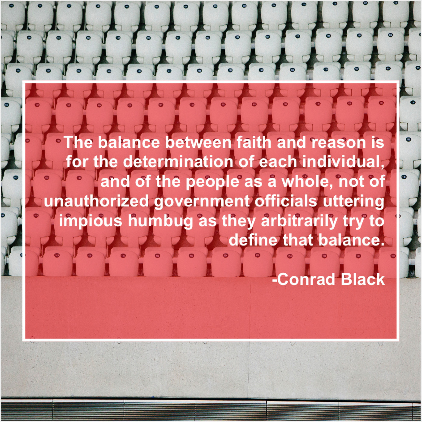 Conrad Black Conrad Black – The balance between faith and… December 23, 2018 admin “The balance between faith and reason is for the determination of each individual, and of the people as a whole, not of unauthorized government officials uttering impious humbug as they arbitrarily try to define that balance.”-Conrad Black