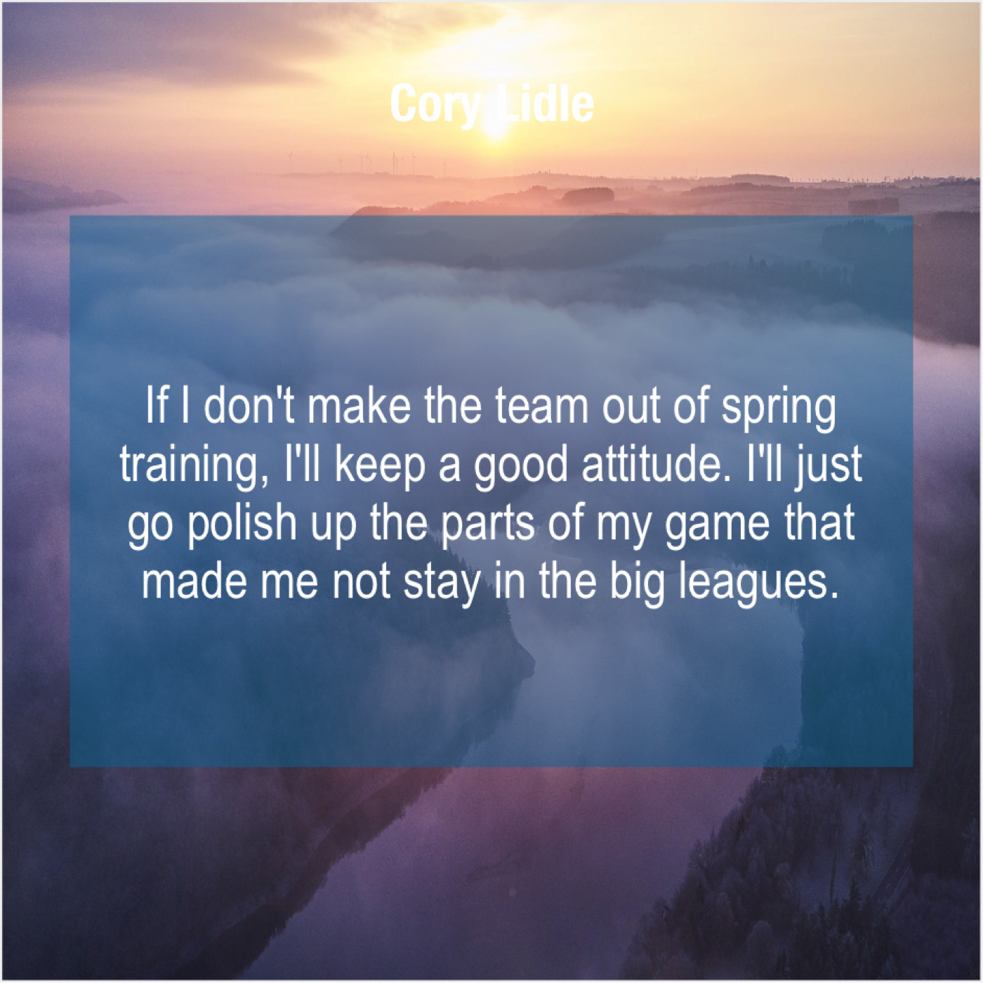 Cory Lidle Cory Lidle – If I don’t make the… May 15, 2019 admin “If I don’t make the team out of spring training, I’ll keep a good attitude. I’ll just go polish up the parts of my game that made me not stay in the big leagues.”-Cory Lidle