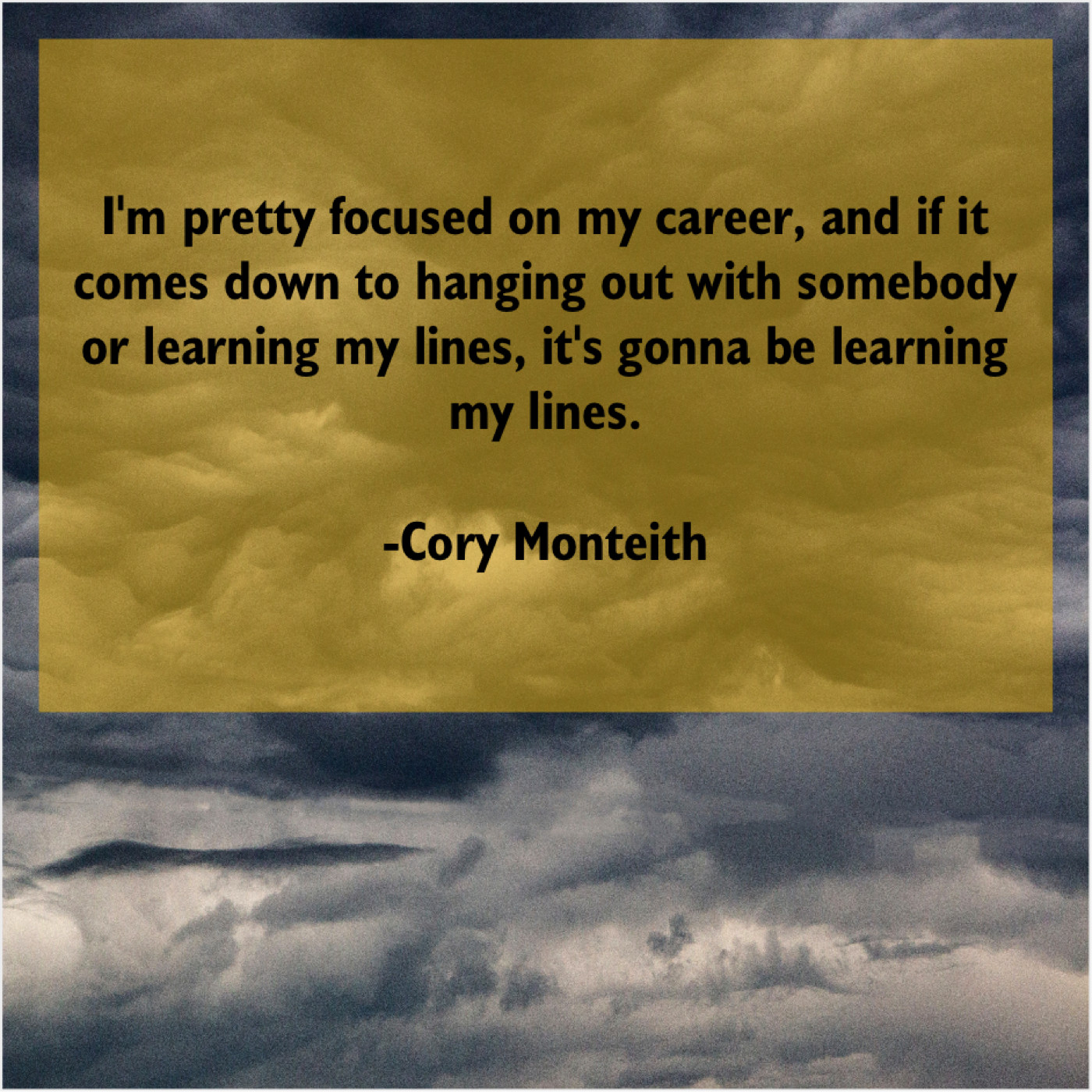 Cory Monteith Cory Monteith – I’m pretty focused on my… September 13, 2019 admin “I’m pretty focused on my career, and if it comes down to hanging out with somebody or learning my lines, it’s gonna be learning my lines.”-Cory Monteith