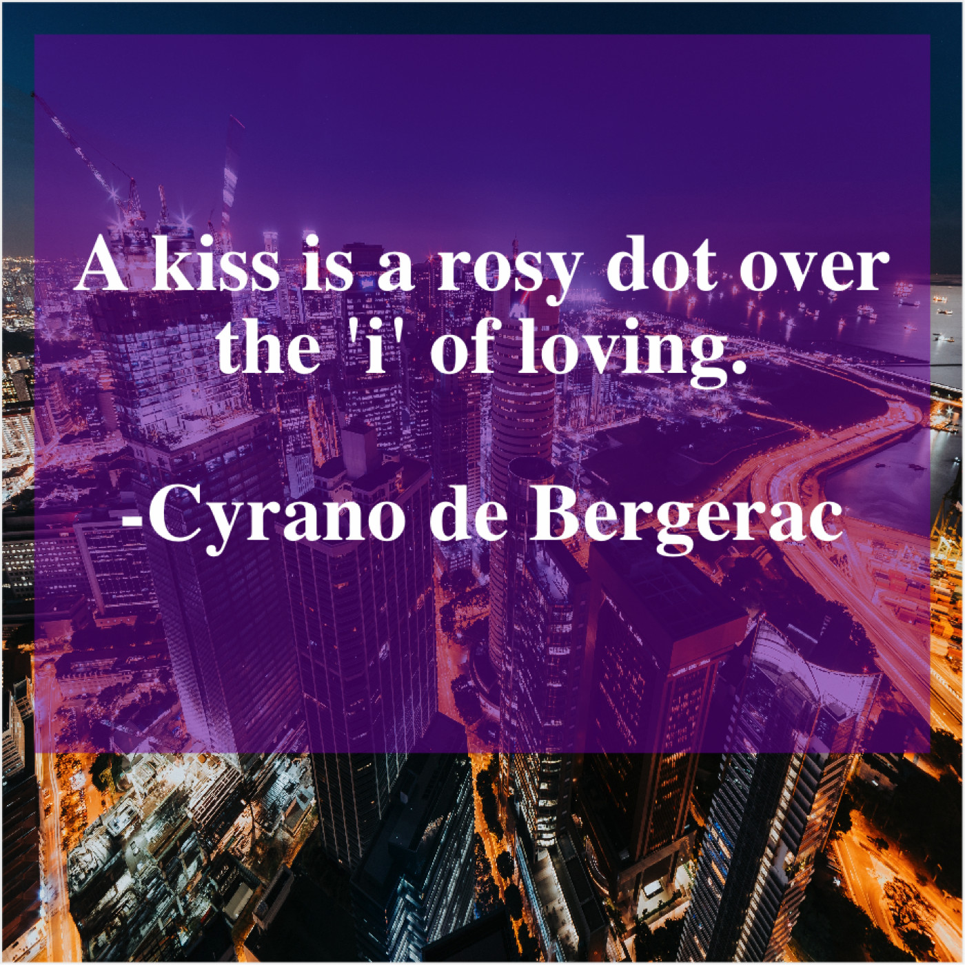 Cyrano de Bergerac Cyrano de Bergerac – A kiss is a rosy… July 8, 2019 admin “A kiss is a rosy dot over the ‘i’ of loving.”-Cyrano de Bergerac