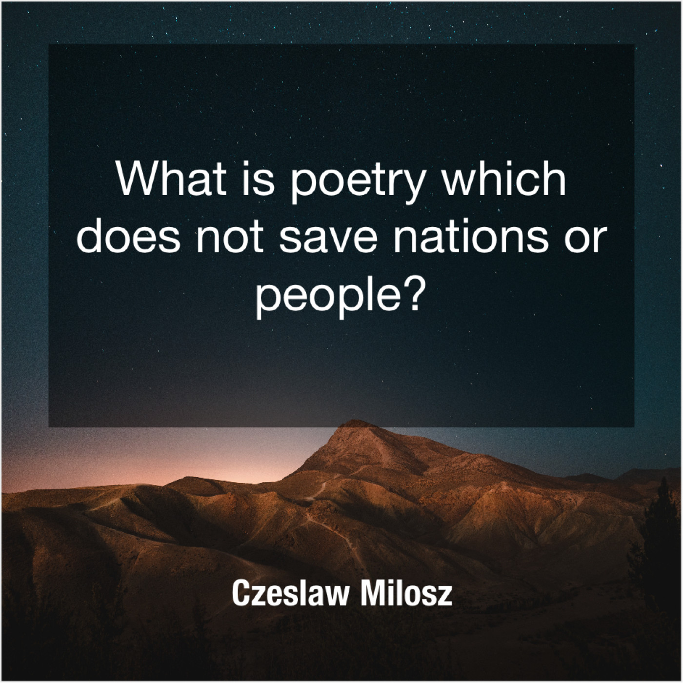 Czeslaw Milosz Czeslaw Milosz – What is poetry which does… November 28, 2018 admin “What is poetry which does not save nations or people?”-Czeslaw Milosz