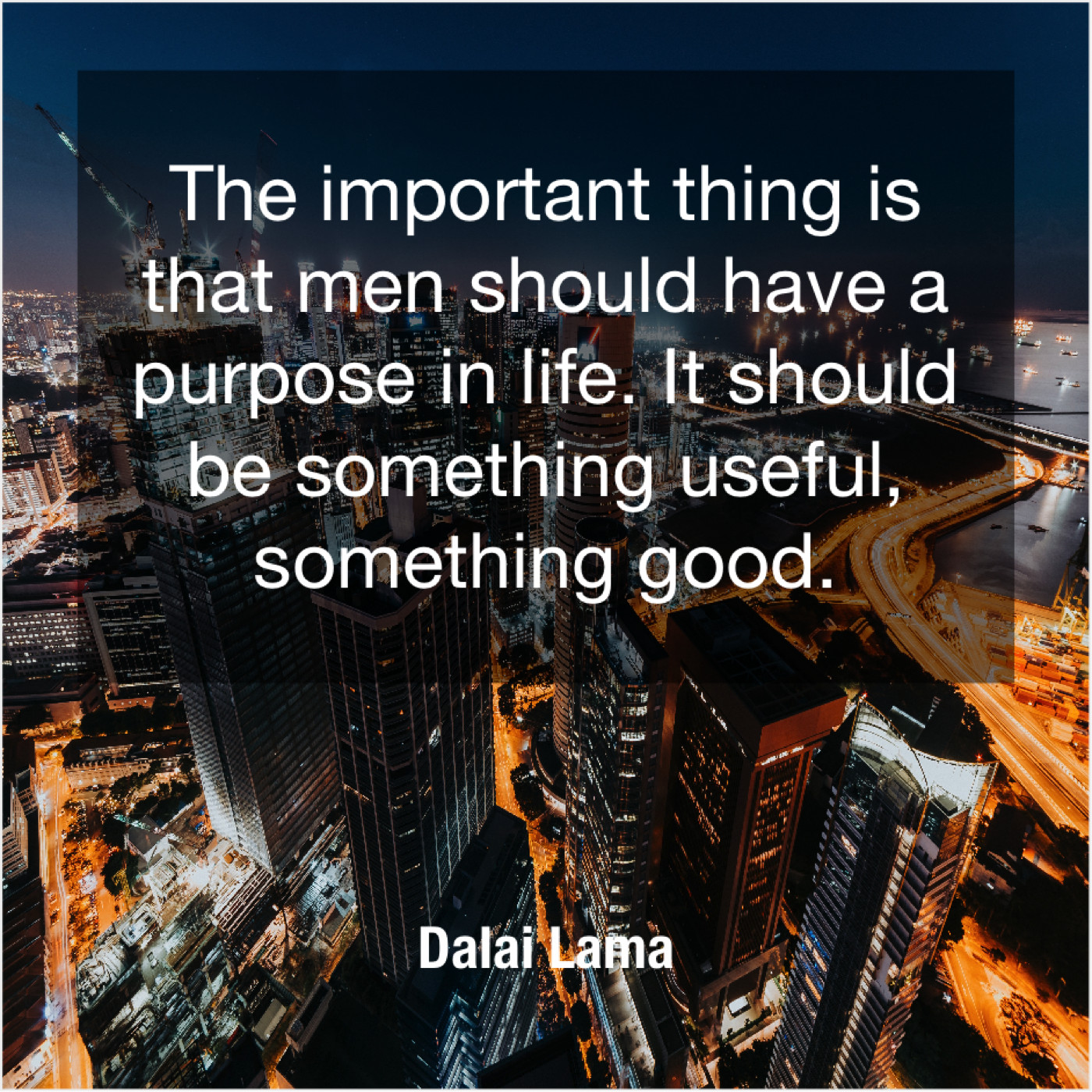 Dalai Lama Dalai Lama – The important thing is that… January 28, 2019 admin “The important thing is that men should have a purpose in life. It should be something useful, something good.”-Dalai Lama