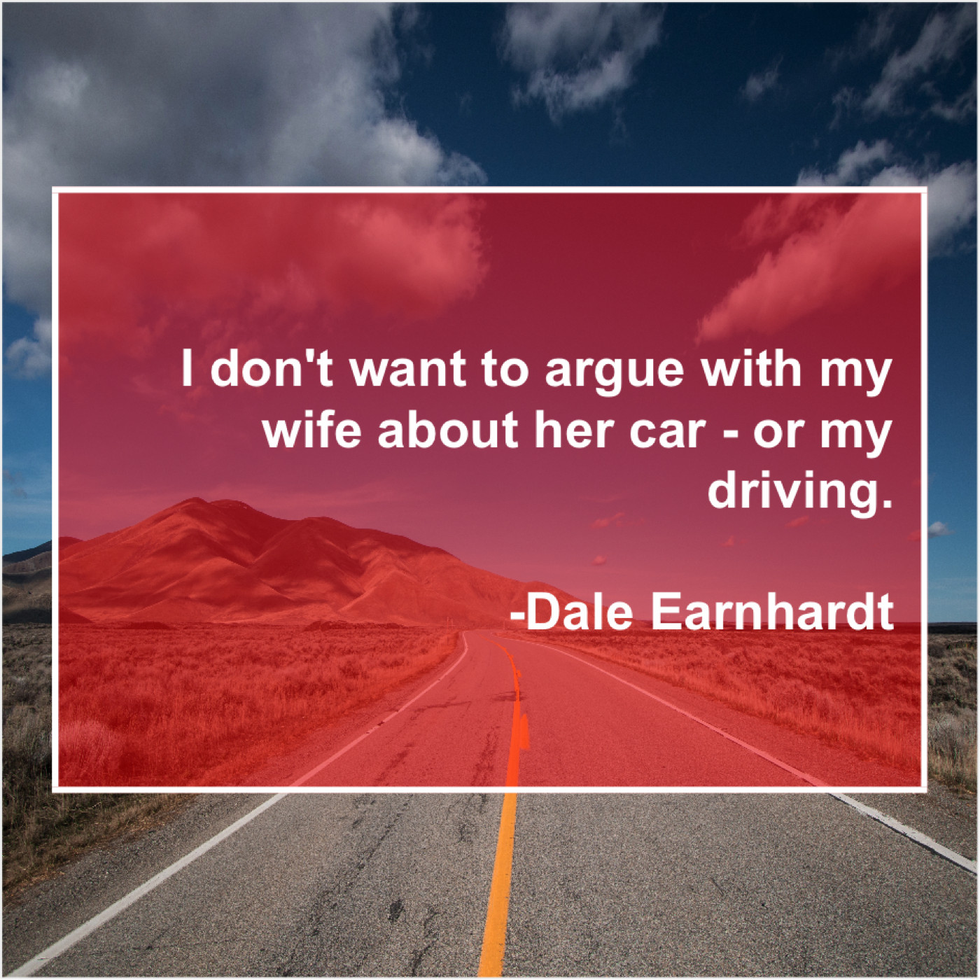 Dale Earnhardt Dale Earnhardt – I don’t want to argue… October 14, 2019 admin “I don’t want to argue with my wife about her car – or my driving.”-Dale Earnhardt