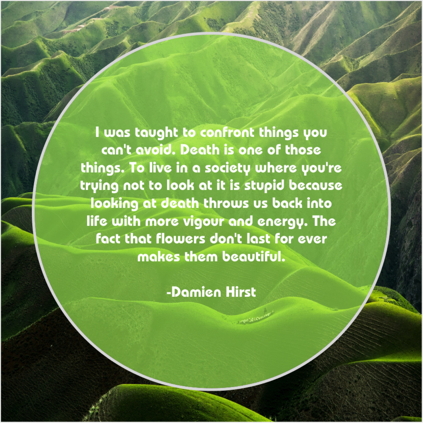 “I was taught to confront things you can’t avoid. Death is one of those things. To live in a society where you’re trying not to look at it is stupid because looking at death throws us back into life with more vigour and energy. The fact that flowers don’t last for ever makes them beautiful.”