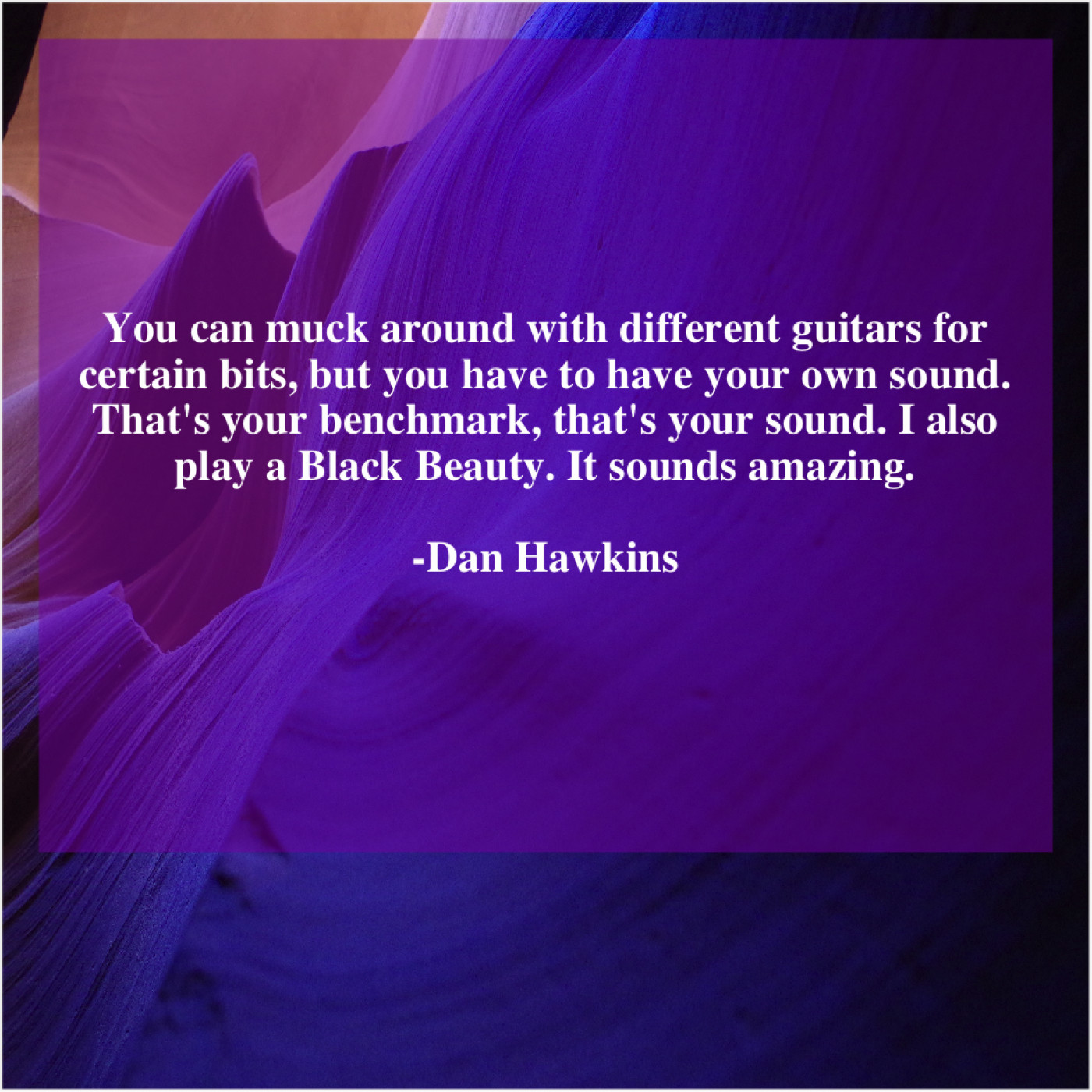 Dan Hawkins Dan Hawkins – You can muck around with… July 18, 2019 admin “You can muck around with different guitars for certain bits, but you have to have your own sound. That’s your benchmark, that’s your sound. I also play a Black Beauty. It sounds amazing.”-Dan Hawkins