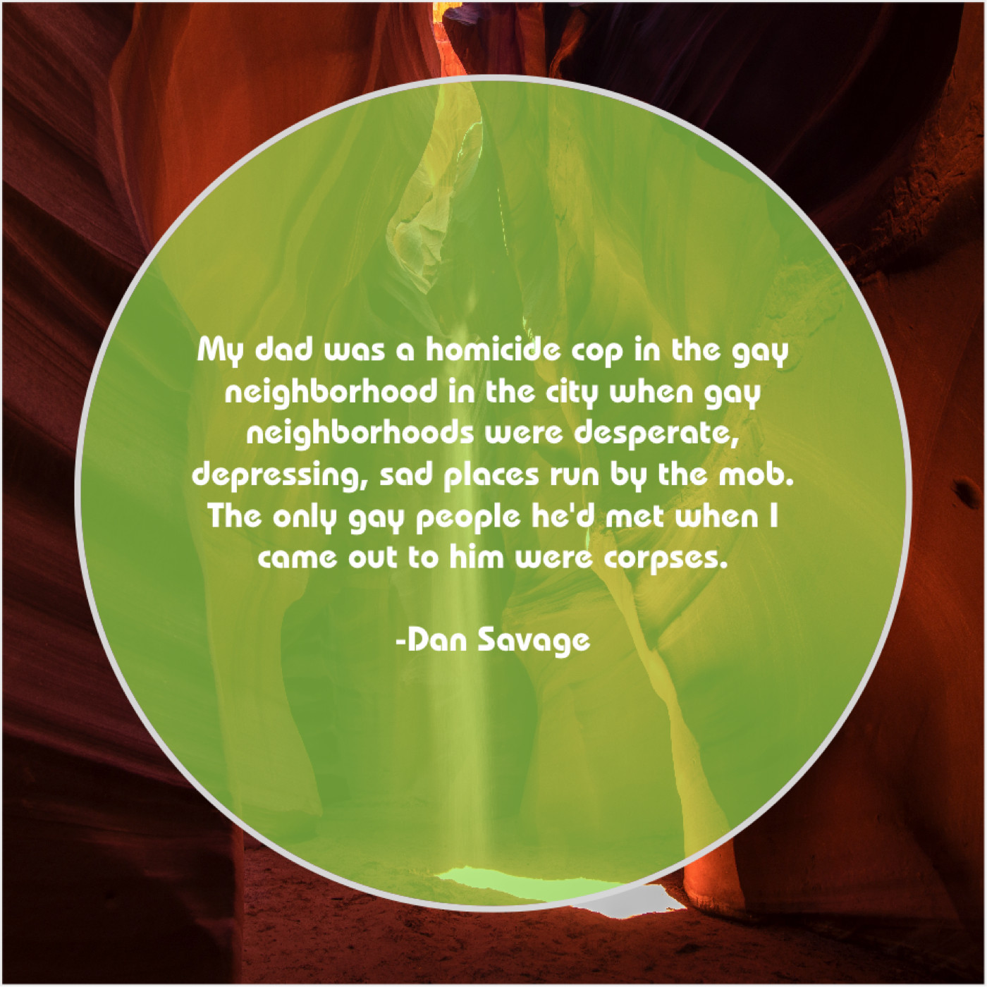 Dan Savage Dan Savage – My dad was a homicide… July 3, 2019 admin “My dad was a homicide cop in the gay neighborhood in the city when gay neighborhoods were desperate, depressing, sad places run by the mob. The only gay people he’d met when I came out to him were corpses.”-Dan Savage