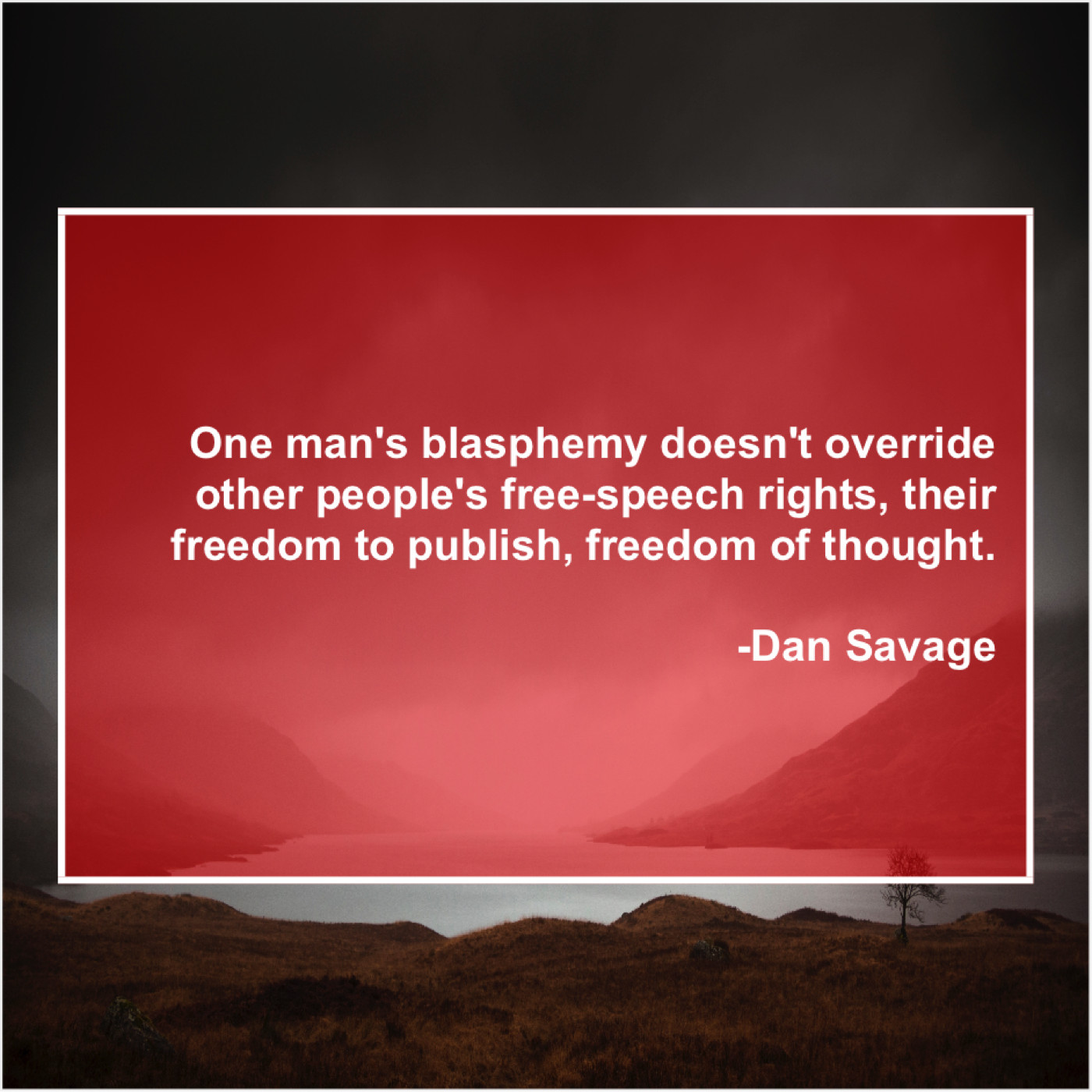 Dan Savage Dan Savage – One man’s blasphemy doesn’t override… August 26, 2019 admin “One man’s blasphemy doesn’t override other people’s free-speech rights, their freedom to publish, freedom of thought.”-Dan Savage