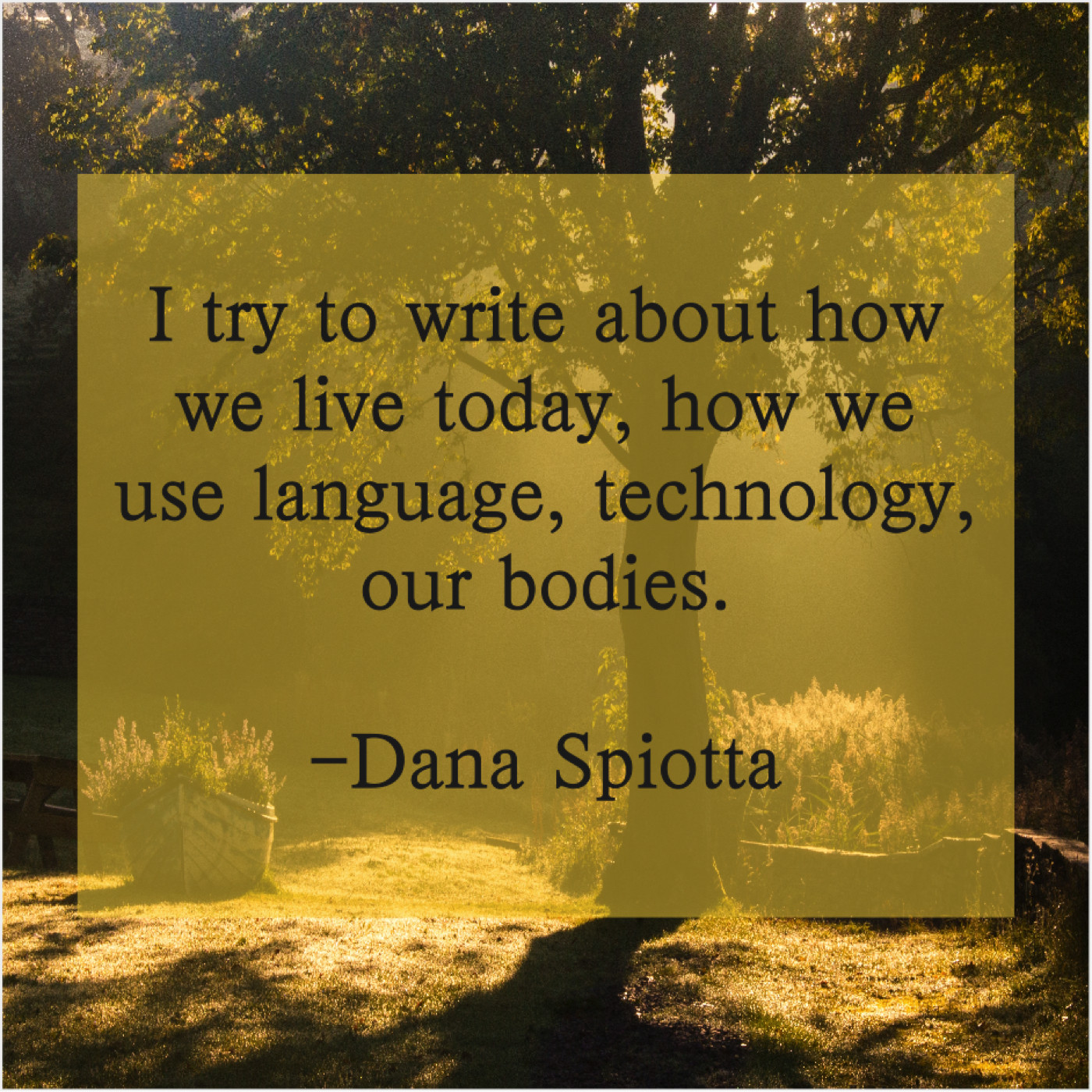 Dana Spiotta Dana Spiotta – I try to write about… January 21, 2019 admin “I try to write about how we live today, how we use language, technology, our bodies.”-Dana Spiotta