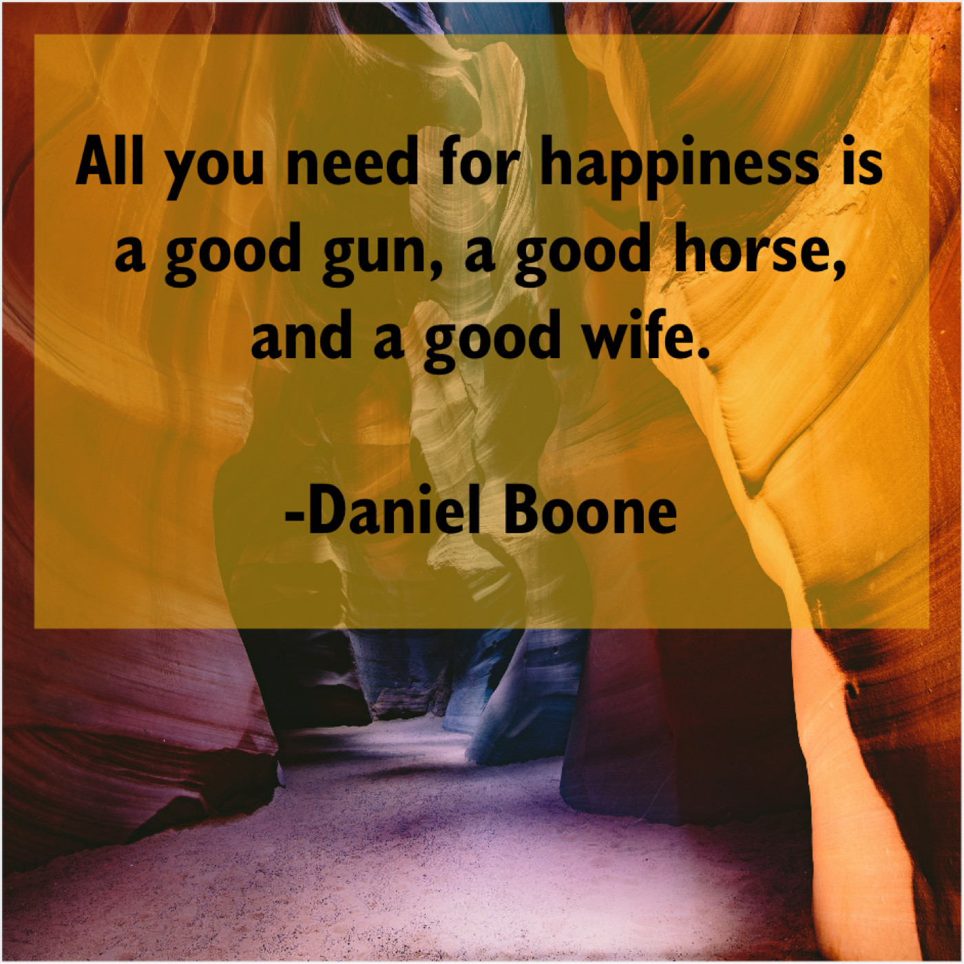 Daniel Boone Daniel Boone – All you need for happiness… December 25, 2018 admin “All you need for happiness is a good gun, a good horse, and a good wife.”-Daniel Boone