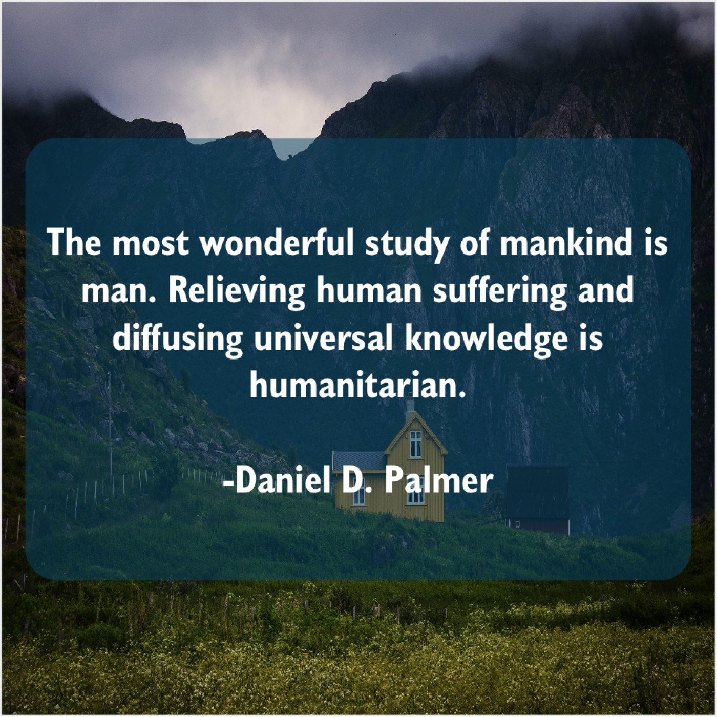 Daniel D. Palmer Daniel D. Palmer – The most wonderful study of… January 5, 2019 admin “The most wonderful study of mankind is man. Relieving human suffering and diffusing universal knowledge is humanitarian.”-Daniel D. Palmer