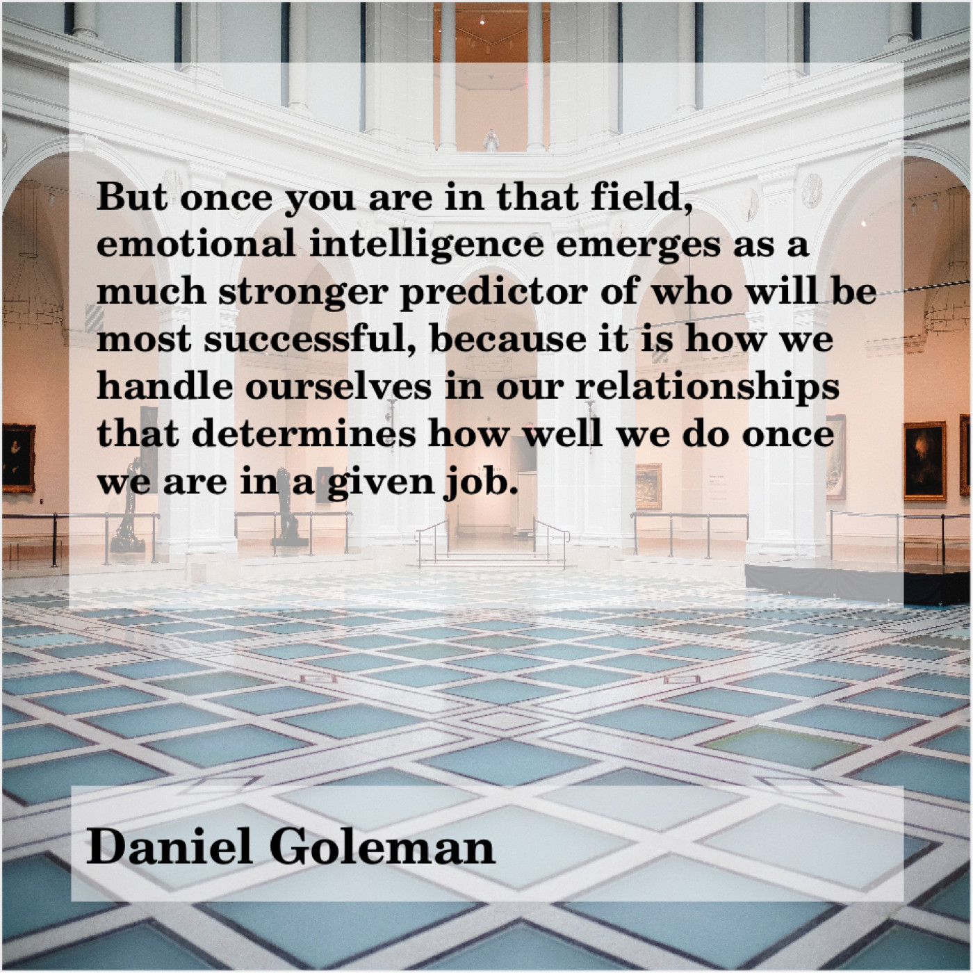 “But once you are in that field, emotional intelligence emerges as a much stronger predictor of who will be most successful, because it is how we handle ourselves in our relationships that determines how well we do once we are in a given job.”