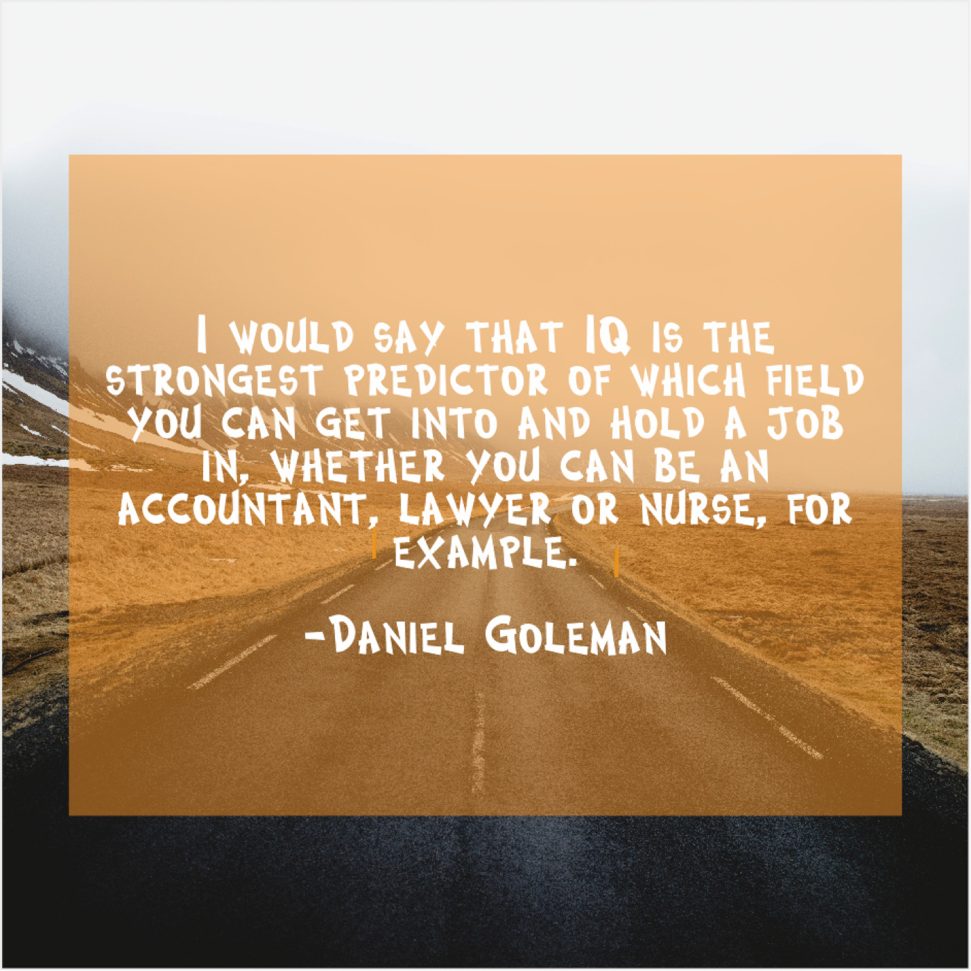 Daniel Goleman Daniel Goleman – I would say that IQ… July 30, 2019 admin “I would say that IQ is the strongest predictor of which field you can get into and hold a job in, whether you can be an accountant, lawyer or nurse, for example.”-Daniel Goleman
