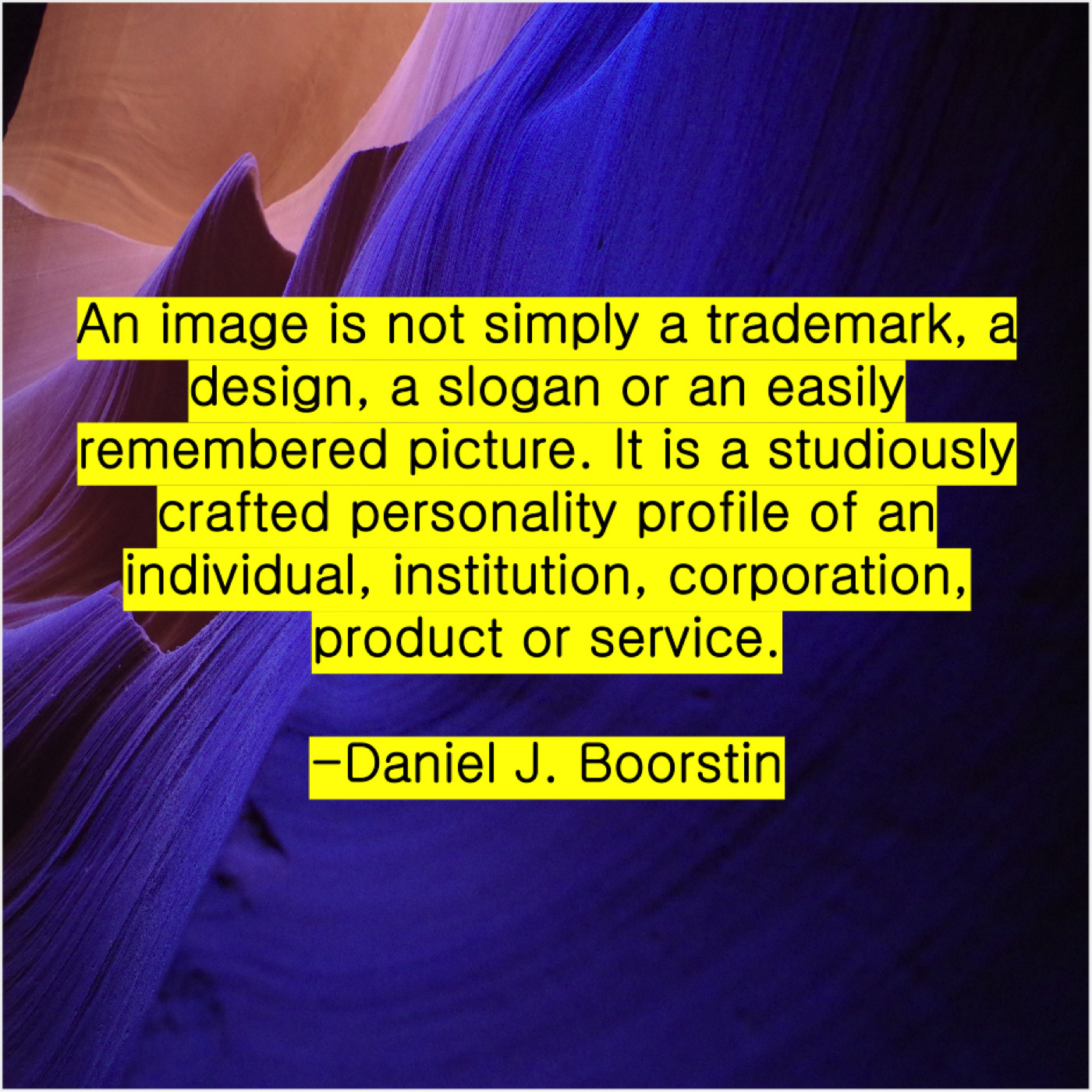 Daniel J. Boorstin Daniel J. Boorstin – An image is not simply… June 11, 2019 admin “An image is not simply a trademark, a design, a slogan or an easily remembered picture. It is a studiously crafted personality profile of an individual, institution, corporation, product or service.”-Daniel J. Boorstin
