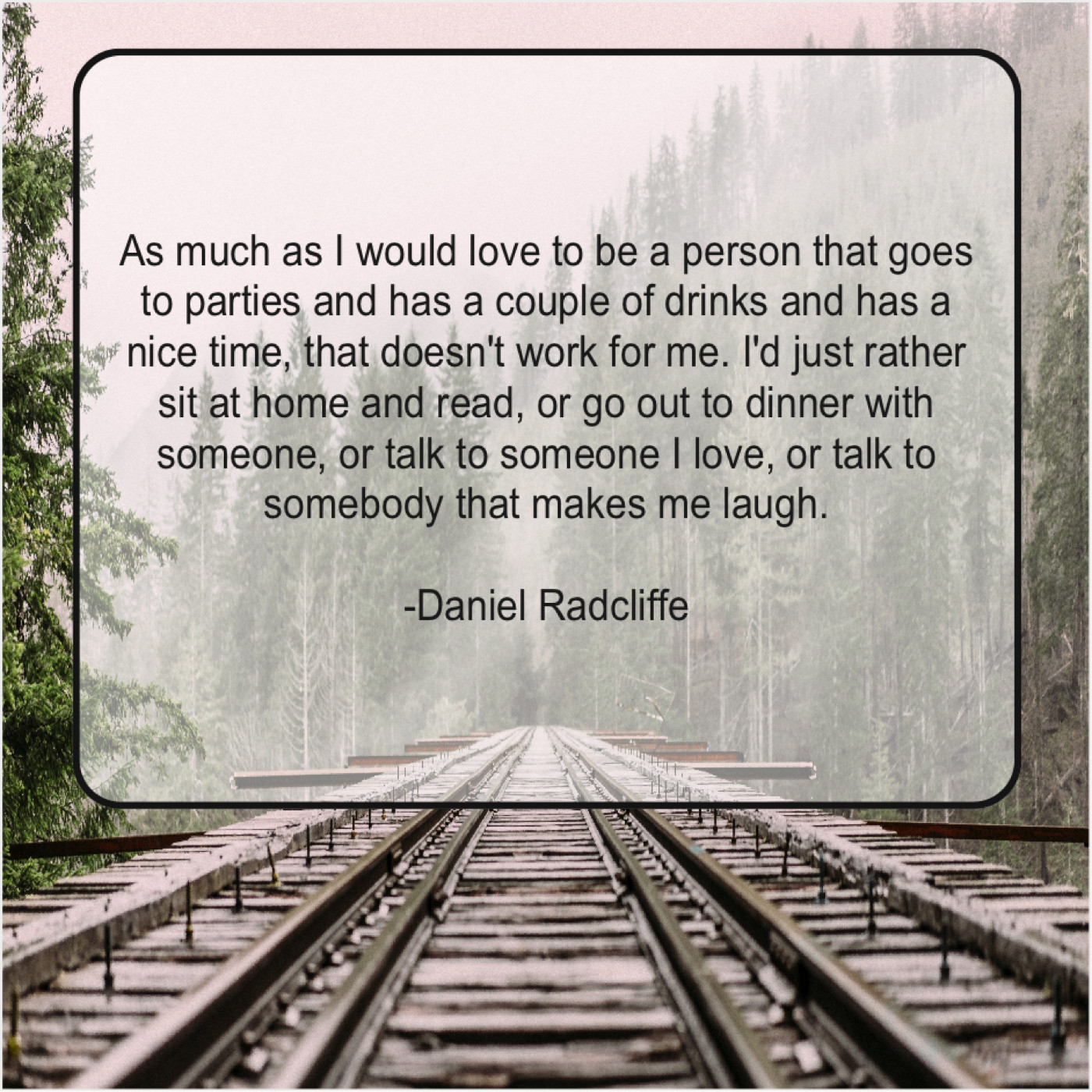 “As much as I would love to be a person that goes to parties and has a couple of drinks and has a nice time, that doesn’t work for me. I’d just rather sit at home and read, or go out to dinner with someone, or talk to someone I love, or talk to somebody that makes me laugh.”