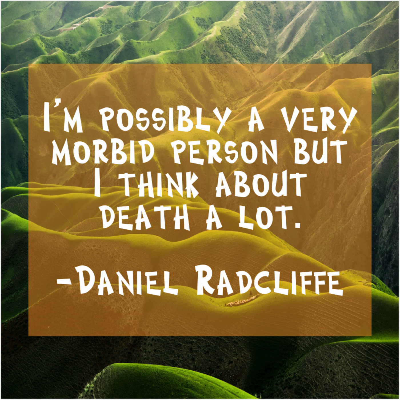Daniel Radcliffe Daniel Radcliffe – I’m possibly a very morbid… January 7, 2019 admin “I’m possibly a very morbid person but I think about death a lot.”-Daniel Radcliffe