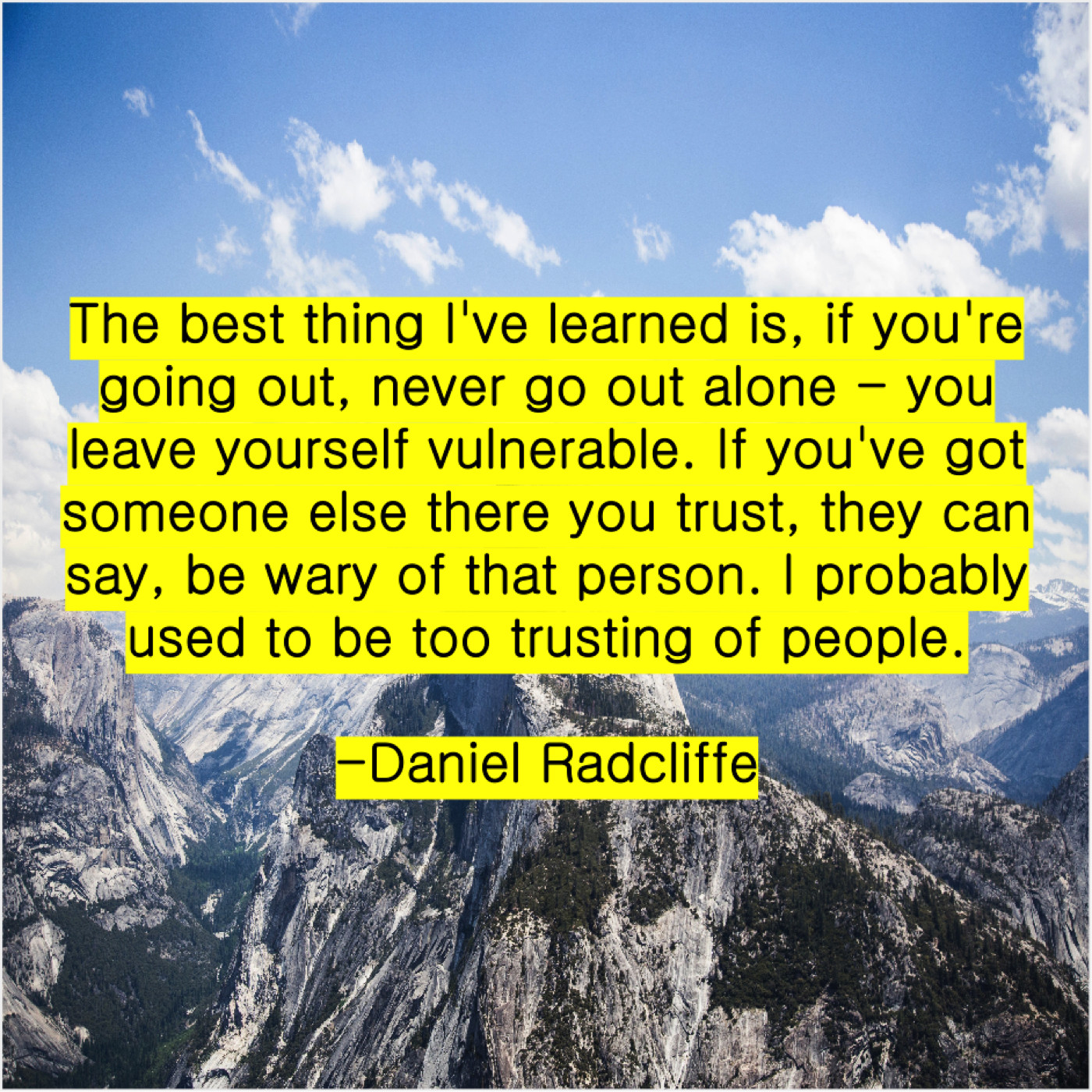 “The best thing I’ve learned is, if you’re going out, never go out alone – you leave yourself vulnerable. If you’ve got someone else there you trust, they can say, be wary of that person. I probably used to be too trusting of people.”