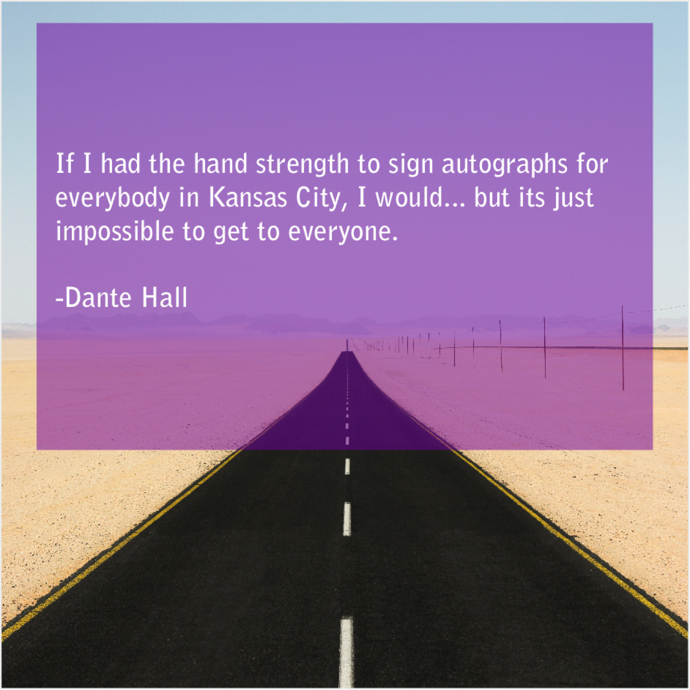 Dante Hall Dante Hall – If I had the hand… October 10, 2019 admin “If I had the hand strength to sign autographs for everybody in Kansas City, I would… but its just impossible to get to everyone.”-Dante Hall