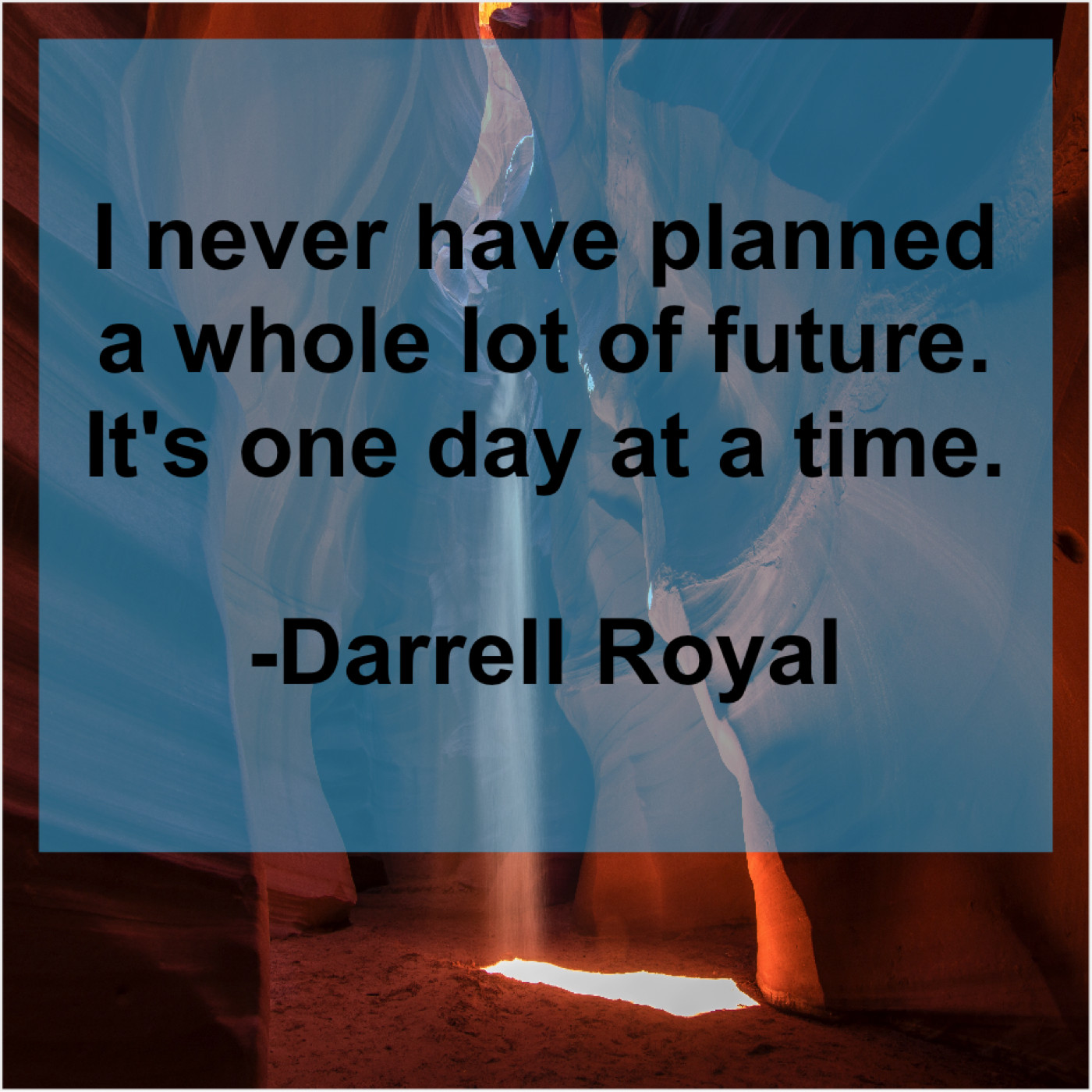 Darrell Royal Darrell Royal – I never have planned a… January 27, 2019 admin “I never have planned a whole lot of future. It’s one day at a time.”-Darrell Royal