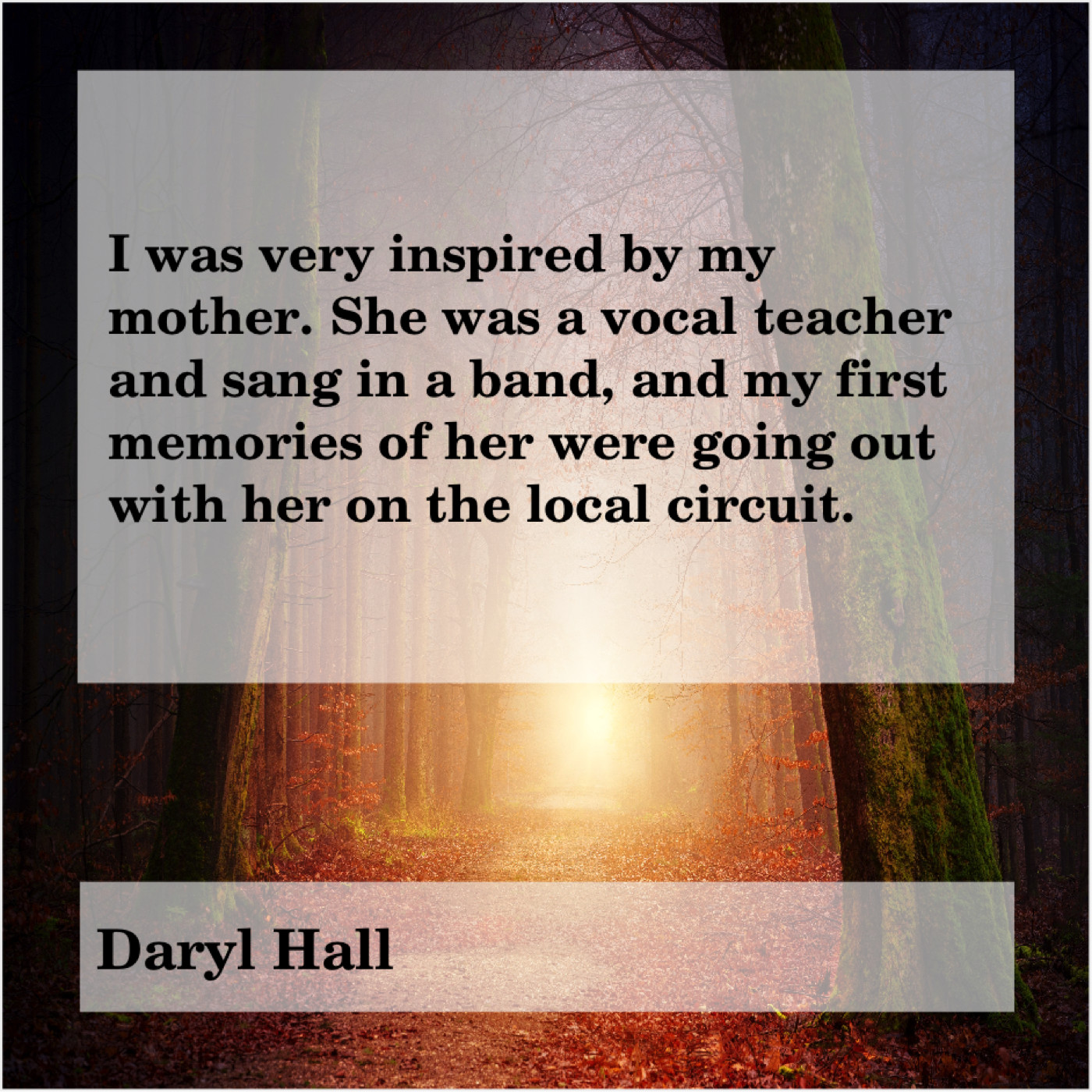 Daryl Hall Daryl Hall – I was very inspired by… June 6, 2019 admin “I was very inspired by my mother. She was a vocal teacher and sang in a band, and my first memories of her were going out with her on the local circuit.”-Daryl Hall