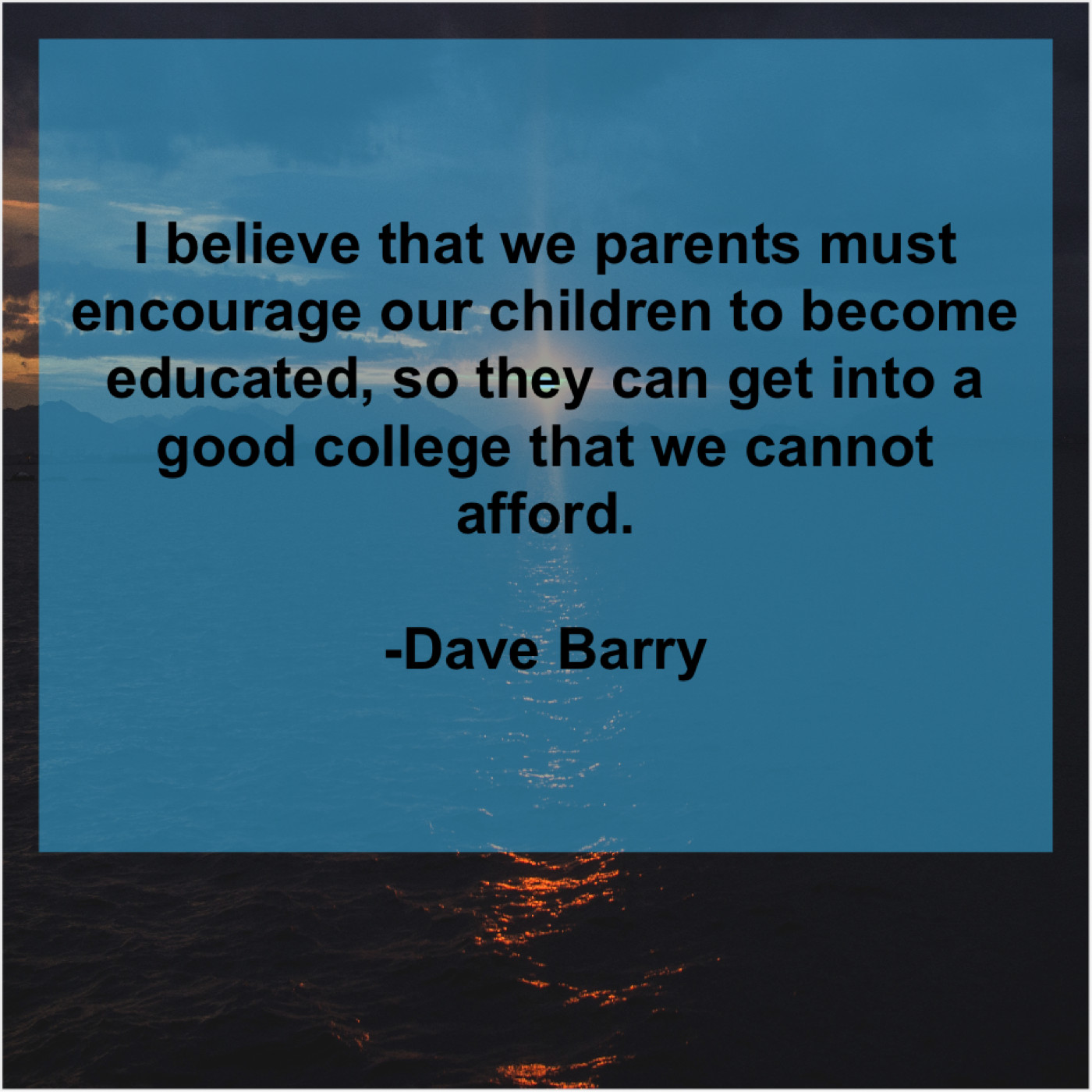 Dave Barry Dave Barry – I believe that we parents… October 20, 2019 admin “I believe that we parents must encourage our children to become educated, so they can get into a good college that we cannot afford.”-Dave Barry