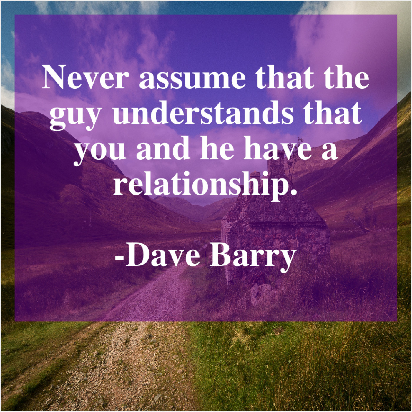 Dave Barry Dave Barry – Never assume that the guy… May 18, 2019 admin “Never assume that the guy understands that you and he have a relationship.”-Dave Barry