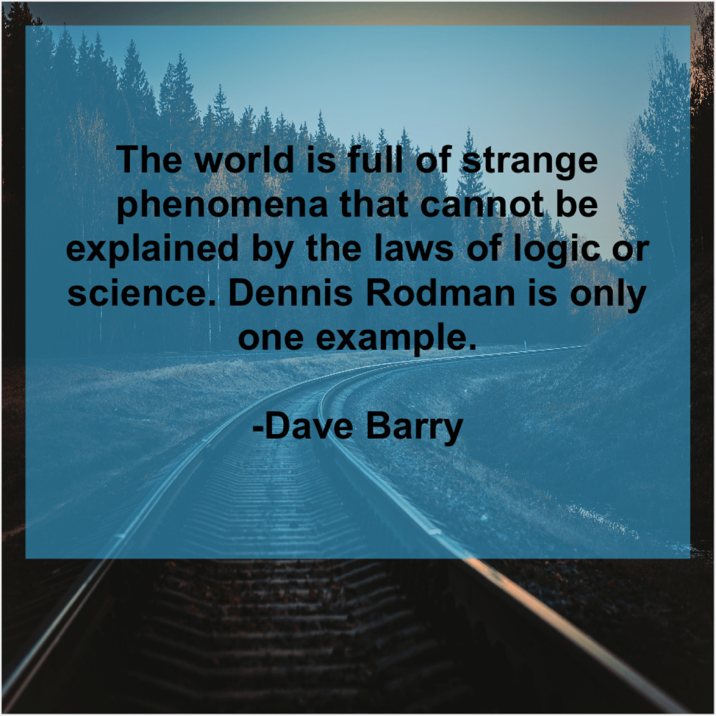 Dave Barry Dave Barry – The world is full of… October 16, 2019 admin “The world is full of strange phenomena that cannot be explained by the laws of logic or science. Dennis Rodman is only one example.”-Dave Barry
