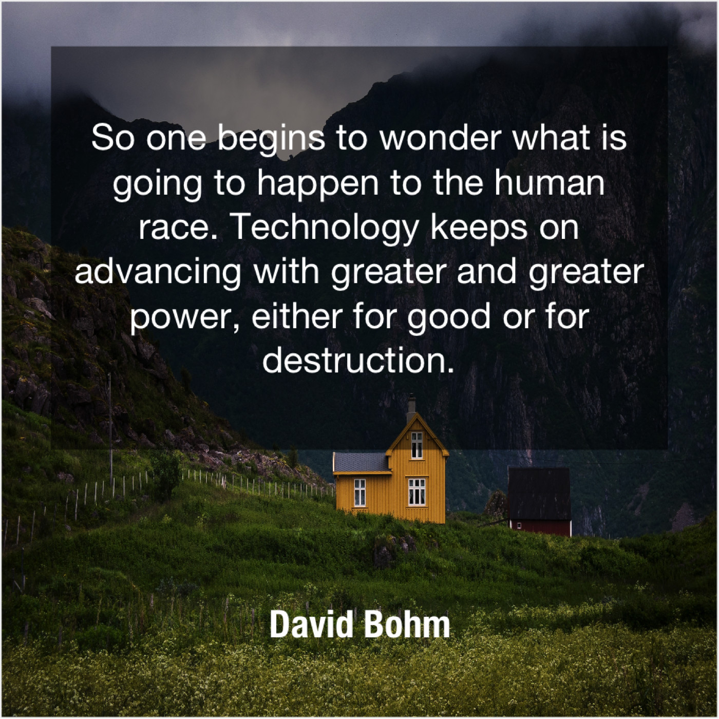 David Bohm David Bohm – So one begins to wonder… January 21, 2019 admin “So one begins to wonder what is going to happen to the human race. Technology keeps on advancing with greater and greater power, either for good or for destruction.”-David Bohm