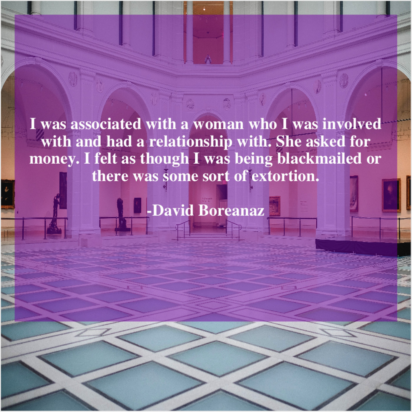 David Boreanaz David Boreanaz – I was associated with a… August 12, 2019 admin “I was associated with a woman who I was involved with and had a relationship with. She asked for money. I felt as though I was being blackmailed or there was some sort of extortion.”-David Boreanaz