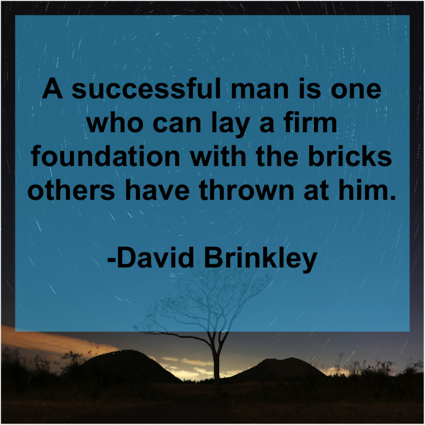 David Brinkley David Brinkley – A successful man is one… November 11, 2018 admin “A successful man is one who can lay a firm foundation with the bricks others have thrown at him.”-David Brinkley