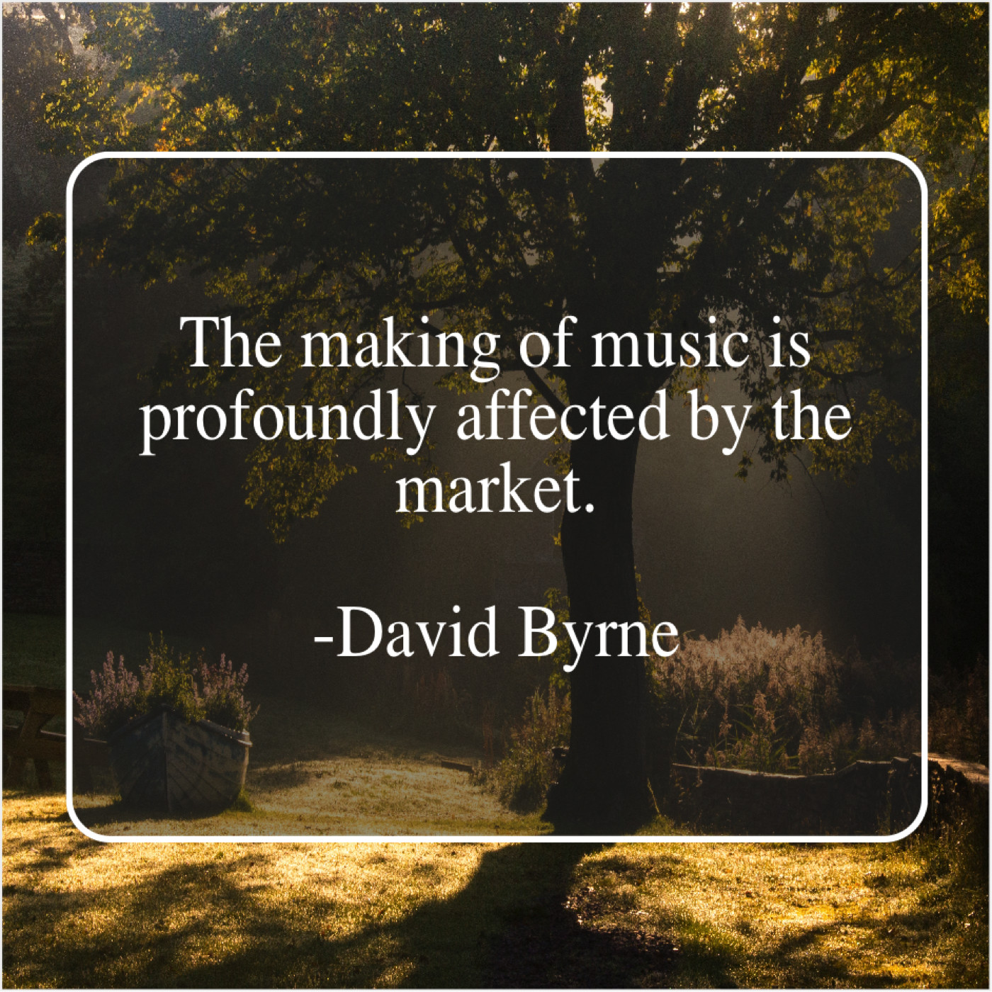 David Byrne David Byrne – The making of music is… July 29, 2019 admin “The making of music is profoundly affected by the market.”-David Byrne