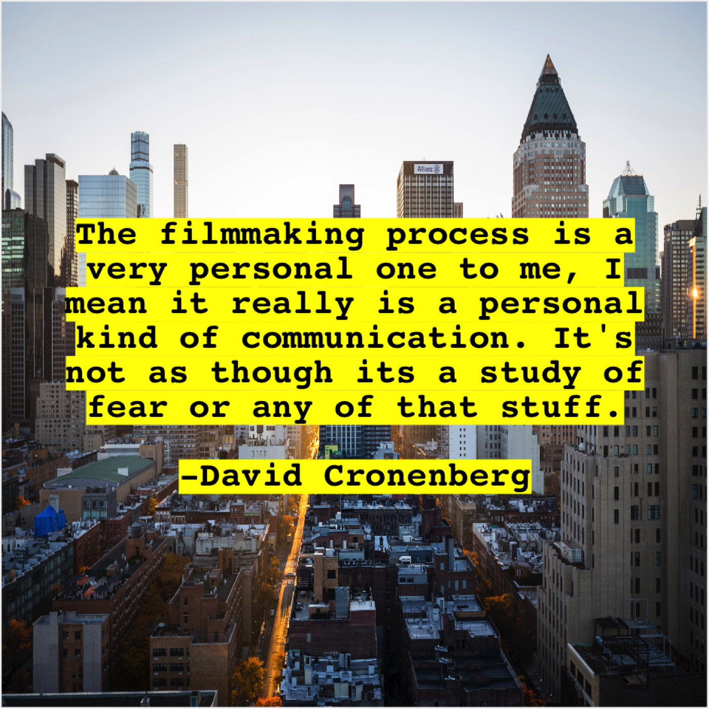 David Cronenberg David Cronenberg – The filmmaking process is a… July 2, 2019 admin “The filmmaking process is a very personal one to me, I mean it really is a personal kind of communication. It’s not as though its a study of fear or any of that stuff.”-David Cronenberg