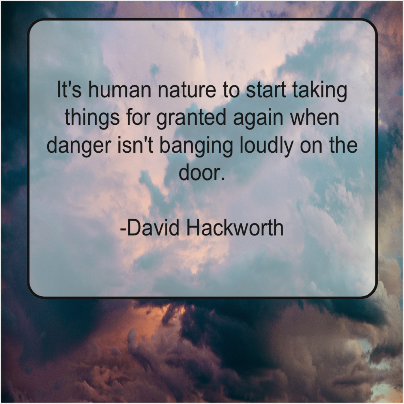 David Hackworth David Hackworth – It’s human nature to start… September 29, 2019 admin “It’s human nature to start taking things for granted again when danger isn’t banging loudly on the door.”-David Hackworth