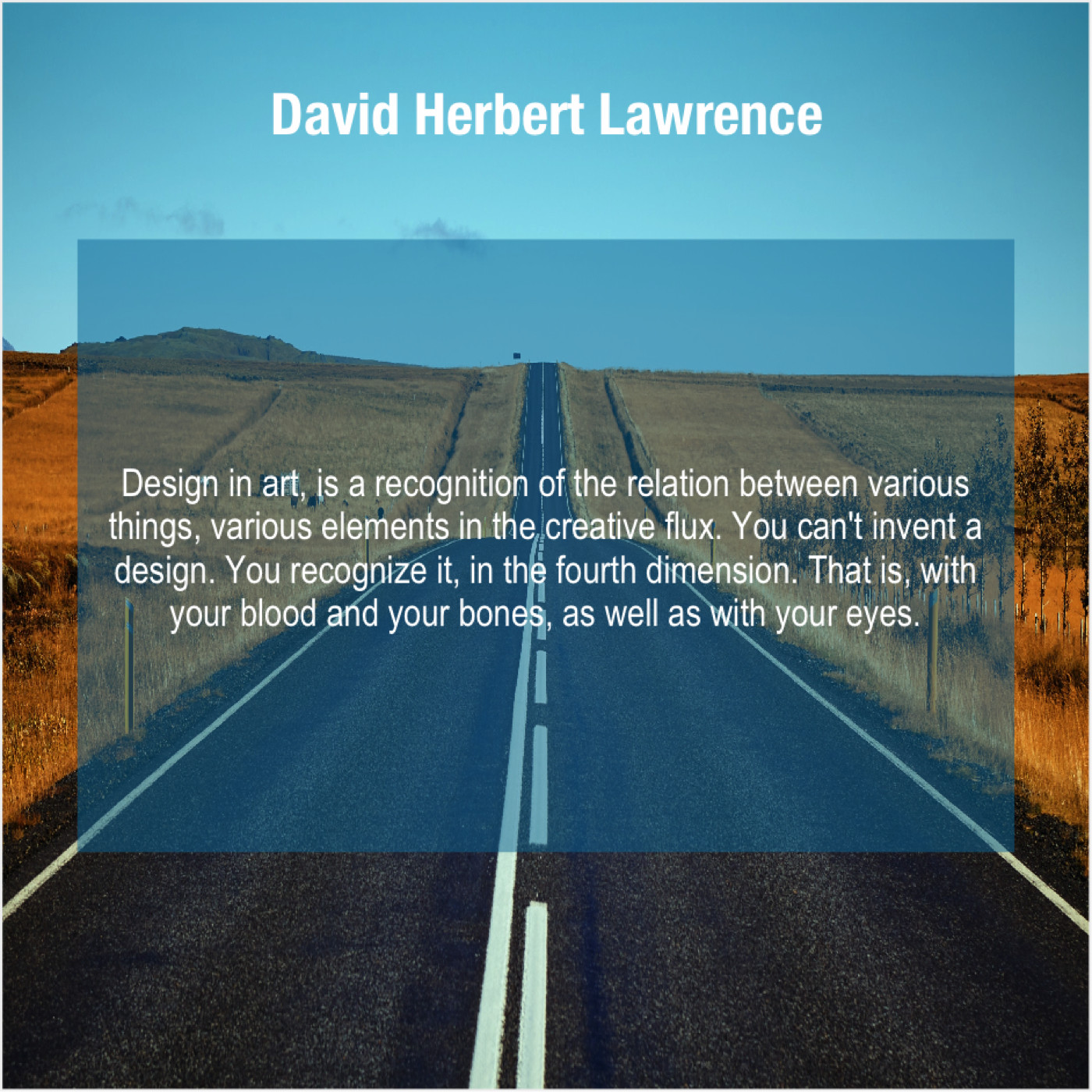 “Design in art, is a recognition of the relation between various things, various elements in the creative flux. You can’t invent a design. You recognize it, in the fourth dimension. That is, with your blood and your bones, as well as with your eyes.”
