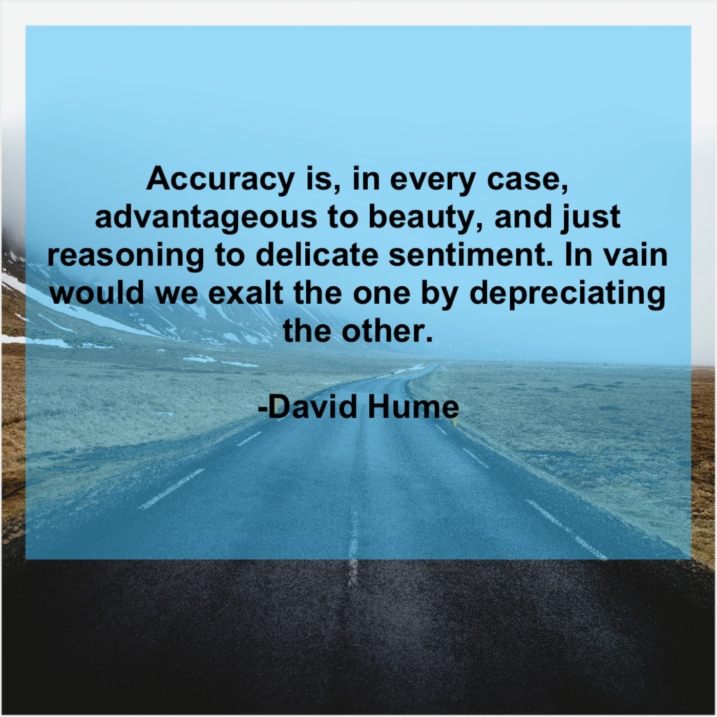 David Hume David Hume – Accuracy is, in every case… May 31, 2019 admin “Accuracy is, in every case, advantageous to beauty, and just reasoning to delicate sentiment. In vain would we exalt the one by depreciating the other.”-David Hume