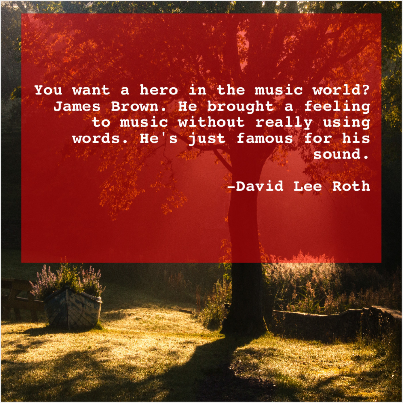 David Lee Roth David Lee Roth – You want a hero in… November 23, 2018 admin “You want a hero in the music world? James Brown. He brought a feeling to music without really using words. He’s just famous for his sound.”-David Lee Roth