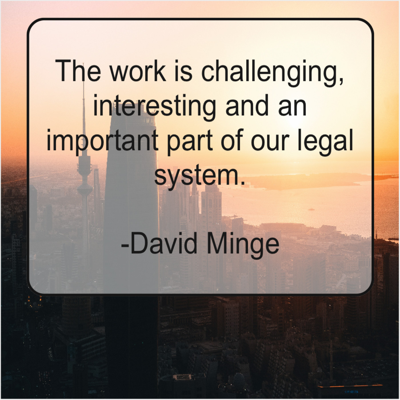 David Minge David Minge – The work is challenging, interesting… April 21, 2019 admin “The work is challenging, interesting and an important part of our legal system.”-David Minge