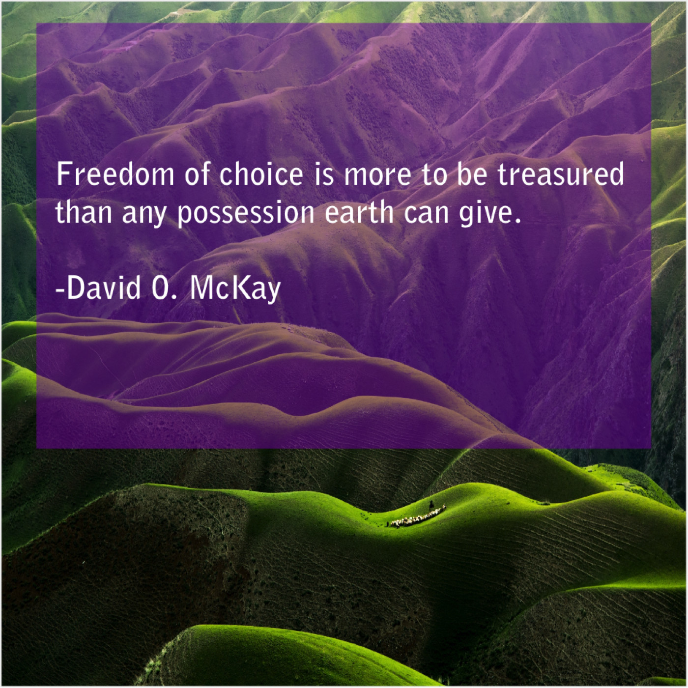 David O. McKay David O. McKay – Freedom of choice is more… March 26, 2019 admin “Freedom of choice is more to be treasured than any possession earth can give.”-David O. McKay